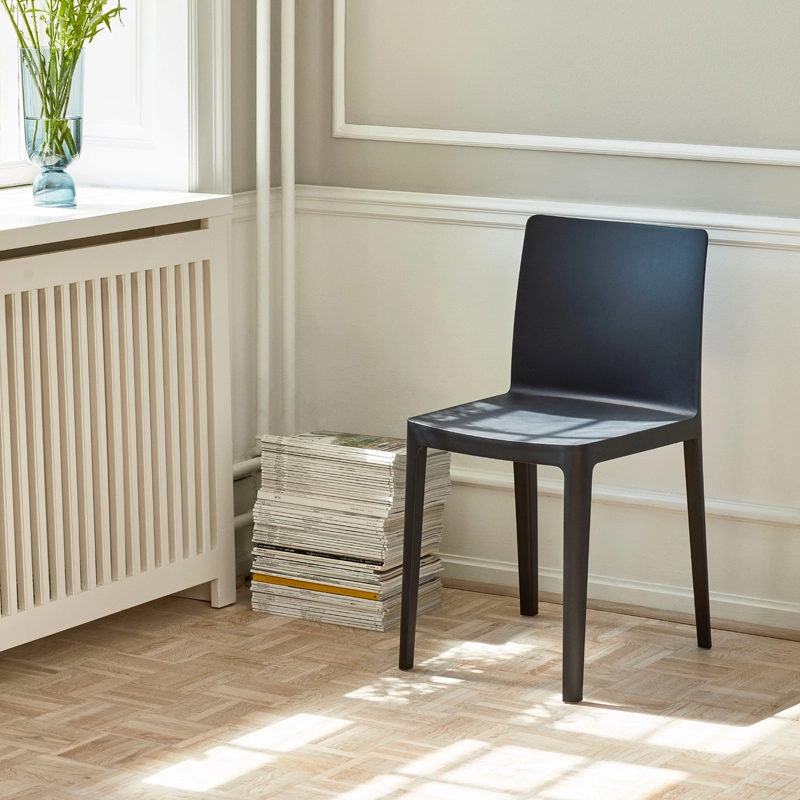 La chaise Élémentaire a été conçue par Ronan et Erwan Bouroullec pour la marque Hay. Les célèbres designers ont décidé de créer un design esthétiquement et physiquement équilibrée. La chaise Élémentaire est entièrement en polypropylène recyclé et les dernières technologies ont été utilisée afin de créer une chaise robuste et durable. Élémentaire possède des proportions précises et un profil clair qui lui permet de se démarquer et d'être une pièce forte. Conçue pour la vie quotidienne, la chaise Élémentaire répond aux besoins de base dans un équilibre de beauté et de force. Sa durabilité et sa résistance permettent à Élémentaire de s'adapter aussi bien à un usage extérieur qu'intérieur.