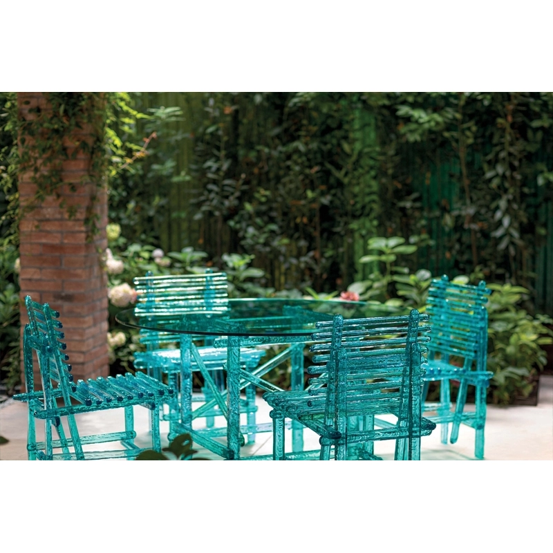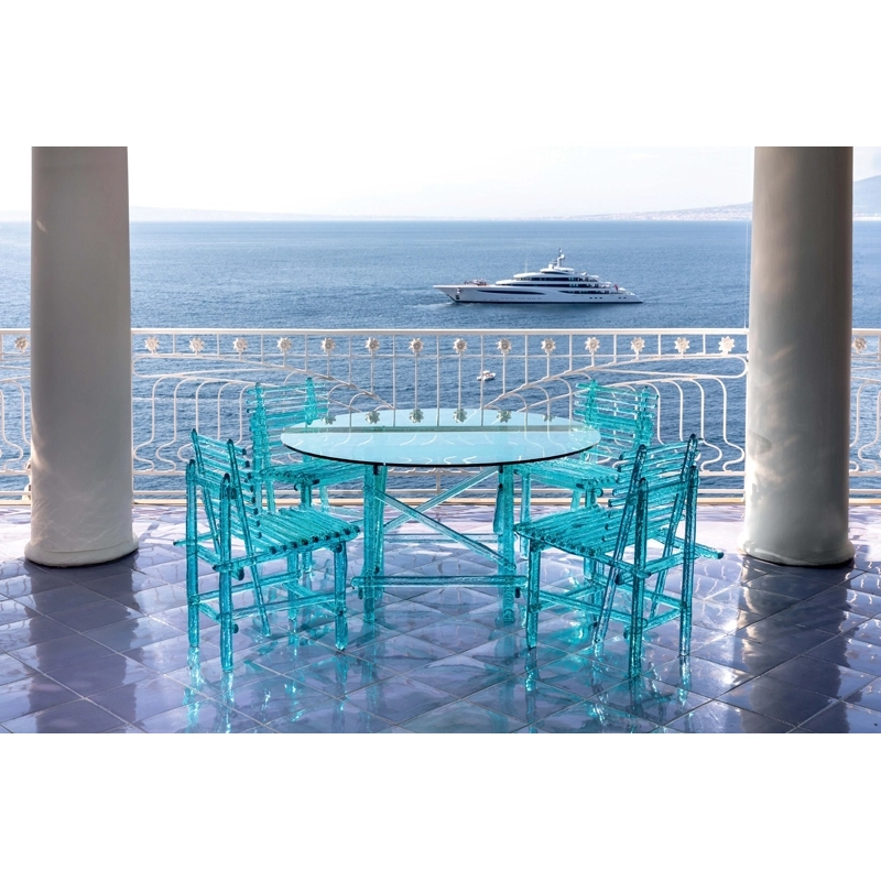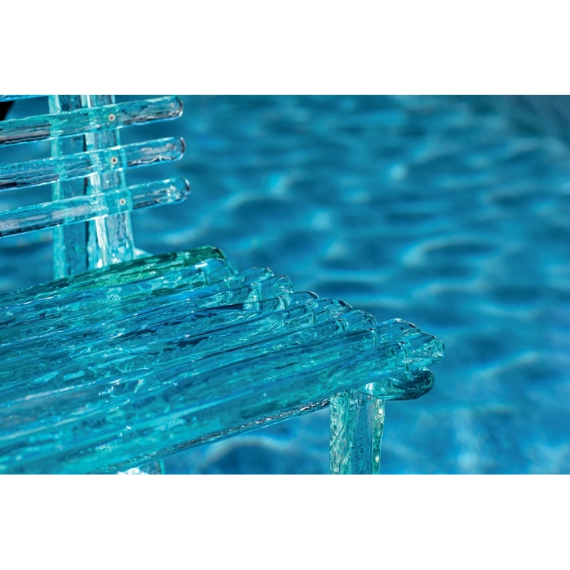 Dessinée par Jacopo Foggini pour la marque Edra, A'mare est une collection de meubles outdoor composée d'une chaise, d'un fauteuil, d'un banc, d'un bain de soleil, d'une table basse et de tables de repas. A travers leurs reflets magiques, la mer et l’eau deviennent les acteurs principaux de l’espace étayé par ces éléments d’ameublement, autant de paysages synonymes de détente, confort et accueil. La collection A’mare Edra s’adapte à toutes les utilisations. Conçue pour durer dans le temps, son esthétique épurée consent notamment à la collection A’mare de s'intégrer aisément dans les espaces intérieurs. Toutes les pièces de la série A’mare sont fabriquées à la main avec des lattes en polycarbonate à la section volontairement irrégulière afin d’obtenir des surfaces hétérogènes perceptibles au toucher uniquement. Les différentes lattes sont assemblées selon une trame élémentaire à l'aide de vis spéciales.