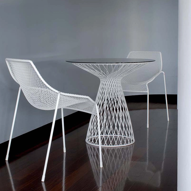 La collection Heaven, dessinée par Jean-Marie Massaud pour Emu, est une ligne de produits qui a su associer des formes importantes à une harmonie élémentaire des proportions, pour un résultat à la fois chic et très équilibré. Le designer a utilisé le savoir-faire de la maison Emu dans le travail du métal pour insuffler une énergie nouvelle a ce matériau. L'acier y est tressé comme un tissu, par le biais d'un seul processus automatisé de soudage, donnant une impression de grande légèreté et de volume incorporel. La coque de la chaise est moulée pour s'adapter parfaitement au corps et offrir un confort optimal. Pour la table, c'est le pied qui est tressé en une seule pièce, sur laquelle repose un plateau en verre gris fumé ou transparent. Heaven est une collection originale et surprenante par ses formes et son jeu de transparence visuelle, qui s'utilise sur une terrasse, dans le jardin et pourquoi pas à l'intérieur de votre maison.