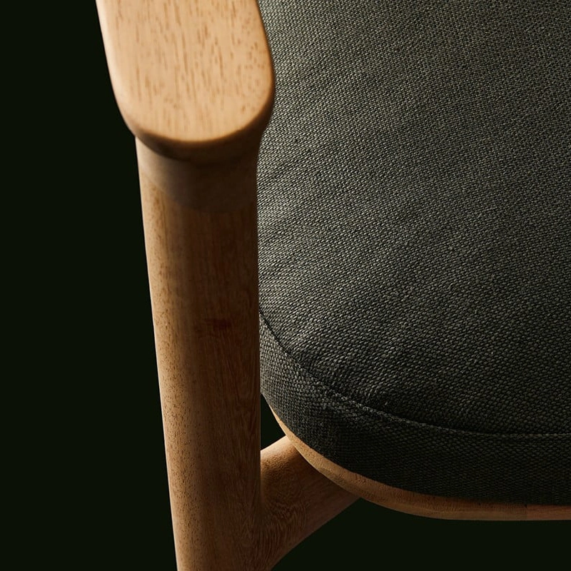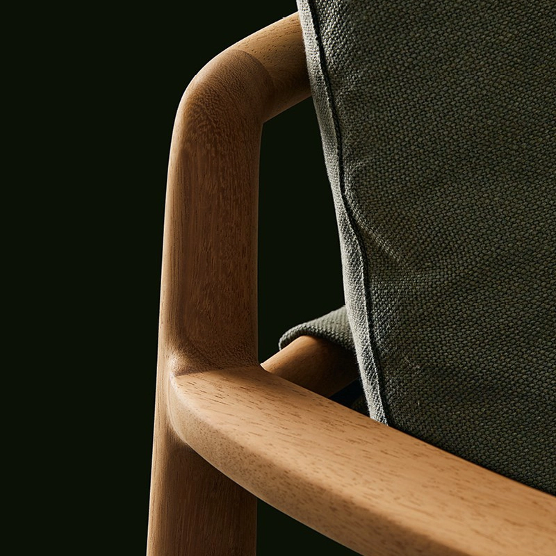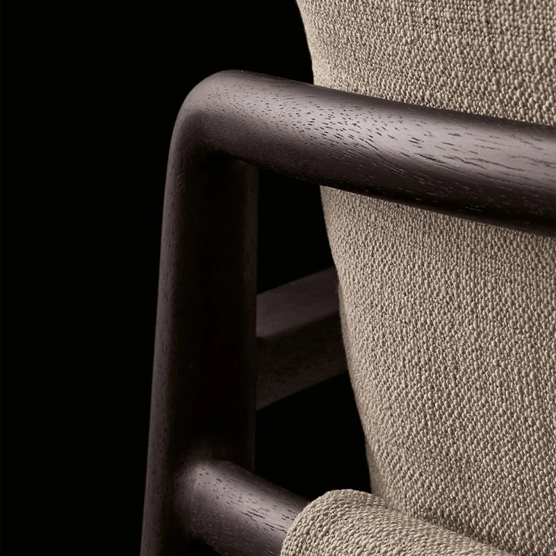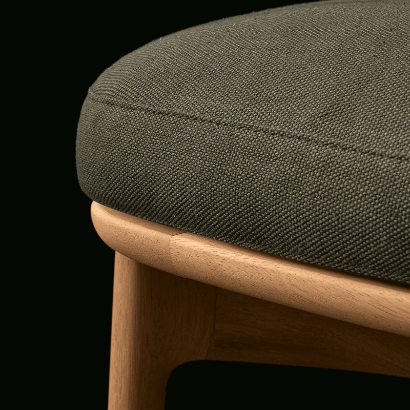 structure en bois de chêne massif, rembourrage et pré-revêtement en polyester recyclé, finition en tissu déhoussable