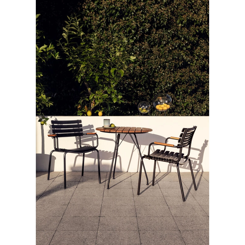 Reclips du designer Henrik Pedersen et de la marque Houe est une collection de sièges pour l’extérieur élégante et fonctionnelle qui allie design contemporain et confort exceptionnel. Les sièges Reclips sont constitués de larges lamelles en plastique clipsées sur un cadre en aluminium. Les lamelles sont fabriquées à partir de déchets plastiques ménagers danois et produites au Danemark. A la fois légère et robuste, la chaise Reclips est conçue pour rester à l’extérieur tout en conservant son élégance intemporelle. Que ce soit dans un jardin ou sur une terrasse, Reclips trouve sa place dans tous les styles d’extérieur. Aussi élégante que confortable, la chaise Reclips Houe est disponible avec des accoudoirs en aluminium ou en bambou.