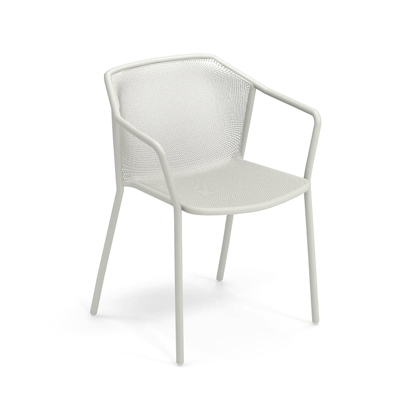 Darwin est une chaise aux proportions ergonomiques et aux lignes légères. Confortable et fonctionnelle, Darwin de Lucidi et Pevere pour Emu est une collection de meubles pour l'extérieur en acier qui évoque les thèmes classiques, à travers une délicate trame de tôle insérée dans une structure à la géométrie contemporaine. L’effet de la texture de l’assise et du dossier est l’élément distinctif du style de cette collection, qui se mêle bien avec les lignes de la structure. Disponible en version avec ou sans accoudoirs, la chaise d'extérieur Darwin est empilable jusqu'à 8 pièces.