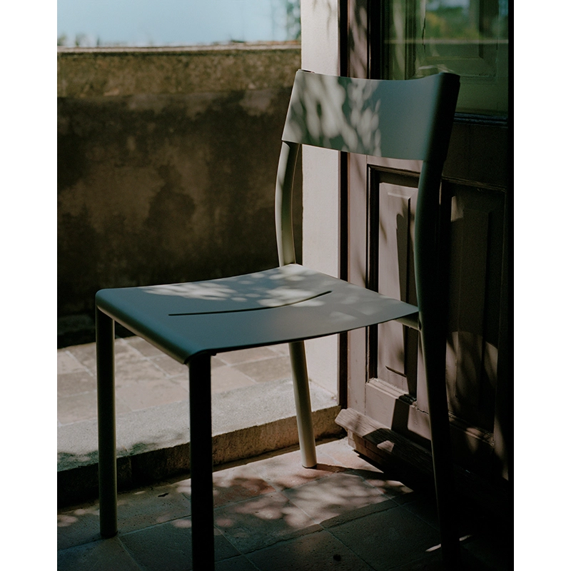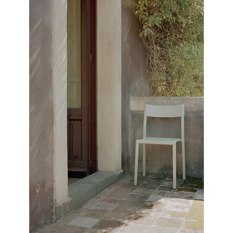 New Works a créé la collection May, comprenant des sièges et des tables spécialement conçus pour les espaces extérieurs. Fabriquée en acier revêtu de poudre, la chaise May est résistante à toutes les conditions météorologiques. À l'instar du petit fauteuil May, cette chaise est empilable, offrant ainsi une praticité optimale pour le rangement. Le design de la série May se distingue par sa simplicité élégante et ses détails précis, mariant une surface délicate et poudrée avec un cadre en acier robuste. La chaise May présente un siège confortable légèrement courbé, avec une fente au milieu pour faciliter le drainage de l'eau, une caractéristique présente également sur les tables de la série. Cette conception astucieuse crée une répétition de lignes qui apporte légèreté et cohérence à l'ensemble du mobilier d'extérieur. Cette chaise représente le mariage parfait entre élégance et fonctionnalité, offrant aux espaces extérieurs tels que les jardins, les patios, les terrasses et les balcons un mobilier durable et esthétique. La chaise May de New Works incarne ainsi le compromis idéal entre style contemporain et praticité, ajoutant une touche d'élégance à tout environnement extérieur.