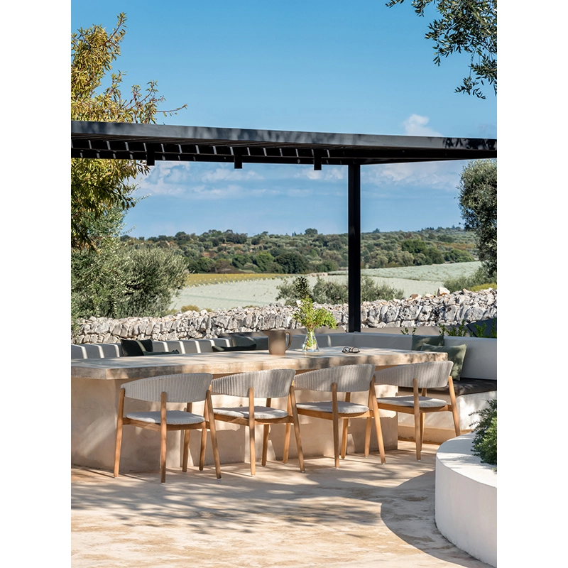 Promettant confort et raffinement, la chaise Mona de Vincent Sheppard incarne l'élégance intemporelle. Elle offre une fusion parfaite entre style et fonctionnalité pour votre espace extérieur. Fabriquée avec de très bons matériaux, la chaise Mona est conçue pour résister aux éléments extérieurs, garantissant une très grande durabilité année après année. Son cadre en teck robuste est habilement tressé. Le design ergonomique de la chaise Mona assure un confort optimal, avec une assise spacieuse et un dossier incliné qui soutient parfaitement le dos. Que ce soit pour se détendre au soleil avec un livre ou pour partager des moments conviviaux, cette chaise offre des moments de relaxation en plein air. Polyvalente et élégante, la chaise Mona de Vincent Sheppard s'adapte harmonieusement à une variété de décors extérieurs, qu'ils soient modernes, rustiques ou traditionnels.