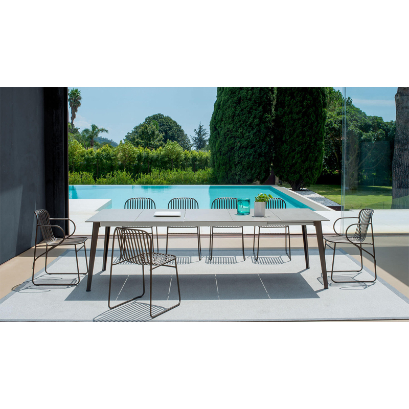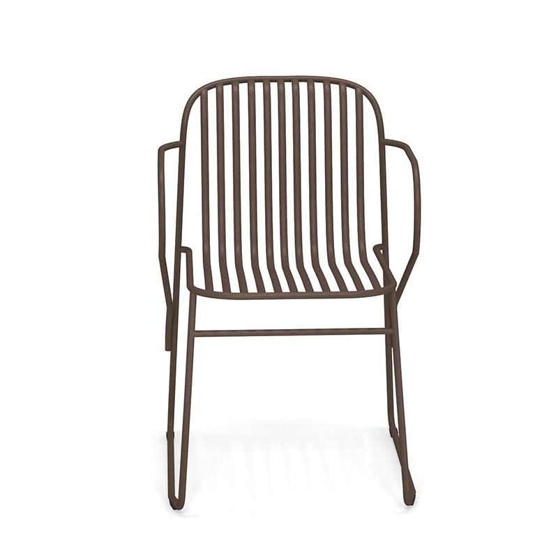 La collection de sièges en acier Riviera, dessinée par Lucidi/Pevere, comprend différents éléments : chaise, fauteuil, transat et tabouret. Sa caractéristique principale : un signe graphique minimal et raffiné. La structure, entièrement soudée, est réalisée en tubulaire et barres à profil arrondi (en demi-amande) d’acier Fe360. Revêtement en Emu-Coat (cataphorèse + laquage).