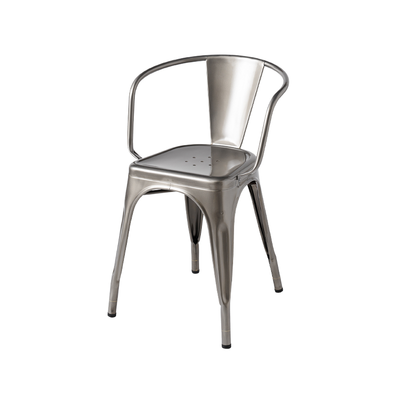 Après la mythique Chaise A éditée par Tolix, Xavier Pauchard réalise le petit fauteuil A56+ qui traverse les époques sans prendre une ride. Empilable, léger et très solide, ce petit fauteuil au style industriel est aujourd'hui un classique moderne. Disponible dans sa version d'origine en avier brut verni poli et en laqué blanc brillant, le petit fauteuil A56+ s'adapte à un usage aussi bien domestique que public. Confortable, il s'intègre dans une cuisine ou autour de la table de salle à manger. Ce fauteuil incarne le style moderne des années 30-50 et son succès est tel qu'on le retrouve dans les allées de l'Exposition Internationale des Arts et Techniques, dès 1937.