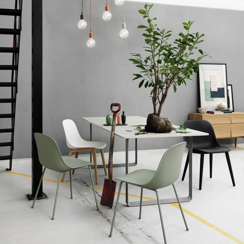 Fiber Chair est une collection de chaises, dessinée par le studio danois Iskos-Berlin pour Muuto. Cette collection se distingue par une coque d'assise innovante composée de fibre de bois et de plastique recyclé. D'apparence lisse, la coque révèle cependant les morceaux de fibre de bois lorsque l'on regarde de plus près, ce qui lui donne cette particularité. Les designers ont étudié chaque ligne et chaque courbe pour créer une chaise d'un grand confort et d'un encombrement minimum. La coque enveloppante, disponible en plusieurs teintes, s'associe à différents piètements : pieds en bois, en acier, piètement traineau ou central... Avec ses nombreuses combinaisons existantes, la Fiber Chair s'adapte à tous les goûts et aux différents espaces, aussi bien domestiques que publics.