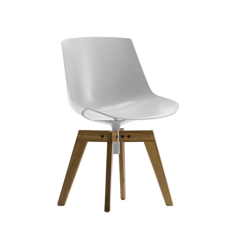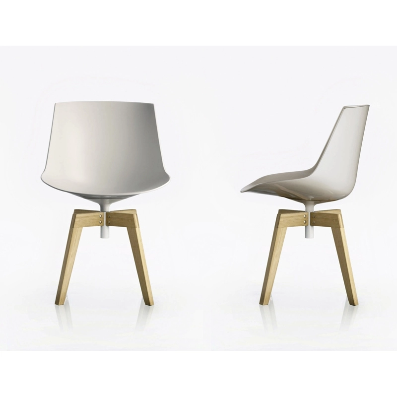 Flow est une famille de chaises confortables, à la silhouette élégante, dessinée par Jean-Marie Massaud pour MDF. Le designer s'est inspiré de classiques du design comme la Plastic Chair de Eames pour développer cette assise très confortable, déclinée sur plusieurs piétements différents. La coque en polycarbonate moulé repose sur quatre pieds en chêne naturel. Elle est en finition brillante à l'extérieur et gaufrée à l'intérieur. Une version de la chaise Flow avec un pied central en aluminium est également disponible, ainsi qu'un coussin galette adapté à la chaise.