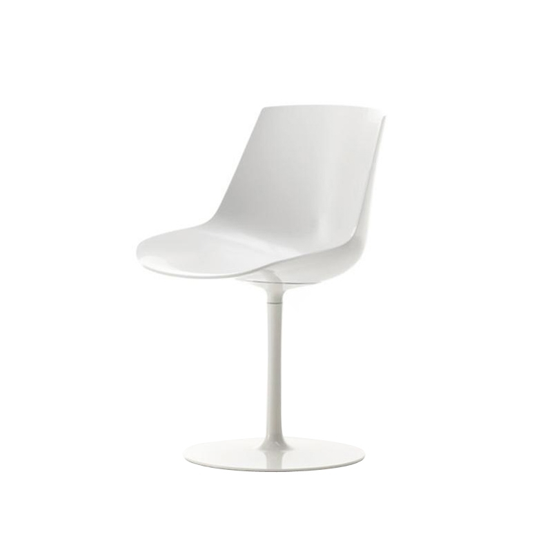 Flow est une famille de chaises confortables, à la silhouette élégante, dessinée par Jean-Marie Massaud pour MDF. Le designer s'est inspiré de classiques du design comme la Plastic Chair de Eames pour développer cette assise très confortable, déclinée sur plusieurs piétements différents. La coque en polycarbonate moulé pivote sur un pied central en aluminium. Elle est en finition brillante à l'extérieur et gaufrée à l'intérieur. Une version de la chaise Flow avec quatre pieds en chêne est également disponible.