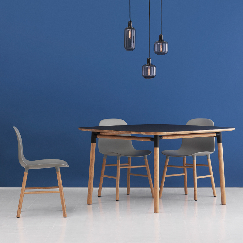 Simon Legald et Normann Copenhagen réitèrent une nouvelle fois leur collaboration en lançant « Form », une collection qui réinterprète la chaise et la table, alliant un design fort à une production industrielle novatrice. Avec le nom « Form », le designer fait référence à ses recherches sur la forme que prend le mobilier au fil de l'histoire. Dans cette collection, la table et la chaise ont en commun certaines caractéristiques : le plateau et les pieds de la table et l'assise avec le piètement de la chaise s'assemblent selon le même principe, spécialement développé pour cette gamme. La coque en plastique de la chaise est associée à des pieds en bois (chêne ou noyer) qui ajoutent une touche chaleureuse, ou bien en acier, qui lui confèrent une allure plus minimaliste. Ses matériaux de qualité et son design tout en courbes lui confèrent un aspect enveloppant et cocooning. Grâce à ses matériaux durables, Form est une collection aussi bien adaptée dans la salle à manger qu'aux environnements publics.