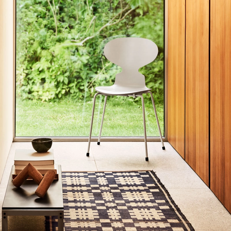 La chaise Fourmi d'Arne Jacobsen est une icône qui ressemble un peu à la forme d'une fourmi avec la tête levée. Sa forme élancée masque sa force.Initialement, Arne Jacobsen dessina les chaises Fourmi pour la cantine du Novo Nordic, un laboratoire pharmaceutique Danois en 1952. Aujourd'hui la chaise Fourmi est une des icônes dominantes de la collection Fritz Hansen. Bien que les formes soient minimalistes, la Fourmi est une chaise extrêmement confortable. C'est une chaise empilable réalisée en bois de chêne et montée sur un piétement à quatre pieds en tube d'acier inoxydable satiné. La coque est faite de placage moulé sous pression - sept couches de placage intérieur et deux couches de placage extérieur, à l'avant et à l'arrière de la coque. Le placage intérieur est en hêtre.