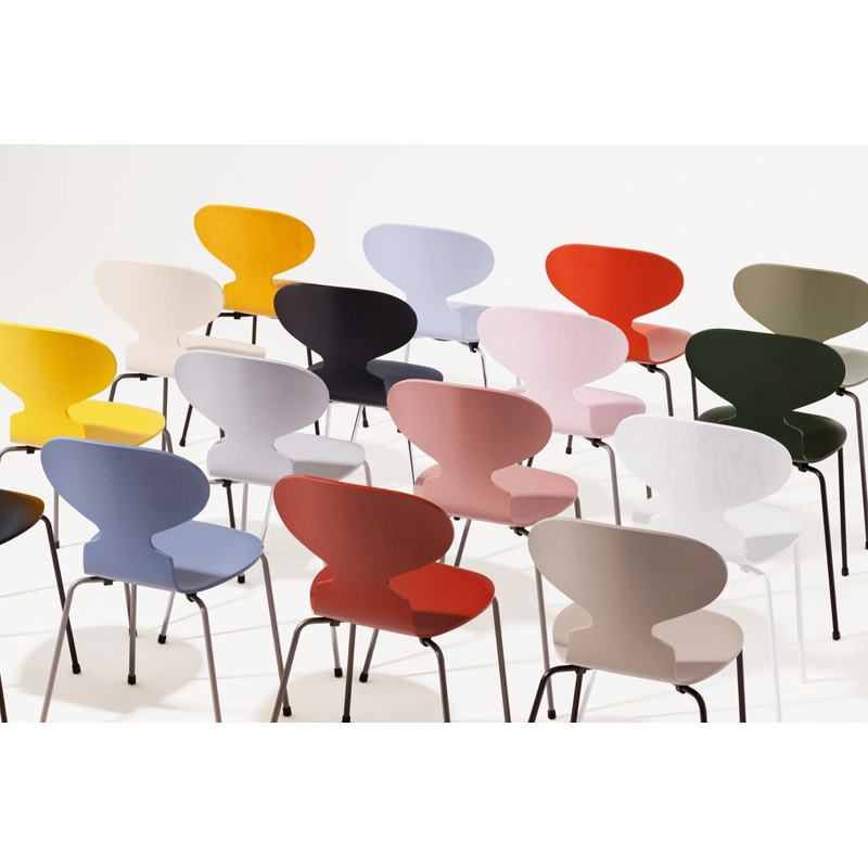 La chaise Fourmi d'Arne Jacobsen est une icône qui ressemble un peu à la forme d'une fourmi avec la tête levée. Sa forme élancée masque sa force.Initialement, Arne Jacobsen dessina les chaises Fourmi pour la cantine du Novo Nordic, un laboratoire pharmaceutique Danois en 1952. Aujourd'hui la chaise Fourmi est une des icônes dominantes de la collection Fritz Hansen. Bien que les formes soient minimalistes, la Fourmi est une chaise extrêmement confortable. C'est une chaise empilable réalisée en bois de chêne et montée sur un piétement à quatre pieds en tube d'acier inoxydable satiné. La coque est faite de placage moulé sous pression - sept couches de placage intérieur et deux couches de placage extérieur, à l'avant et à l'arrière de la coque. Le placage intérieur est en hêtre.