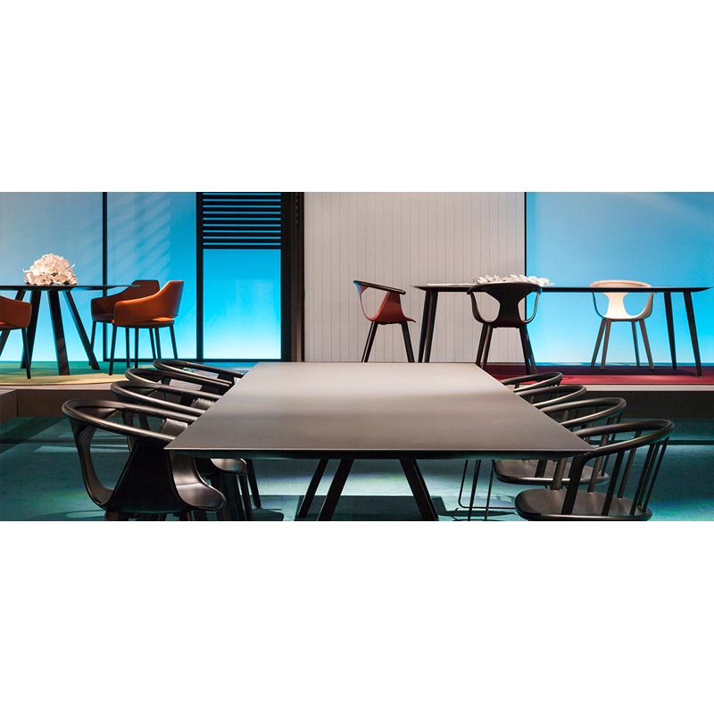chaise Fox trouve sa place dans différents types d’espaces collectifs comme les cafétérias ou les restaurants, mais aussi à la maison, dans la salle à manger. La version avec piètement en acier est empilable.