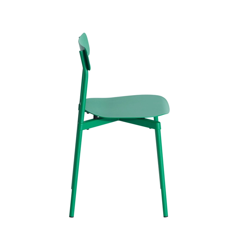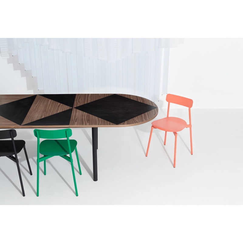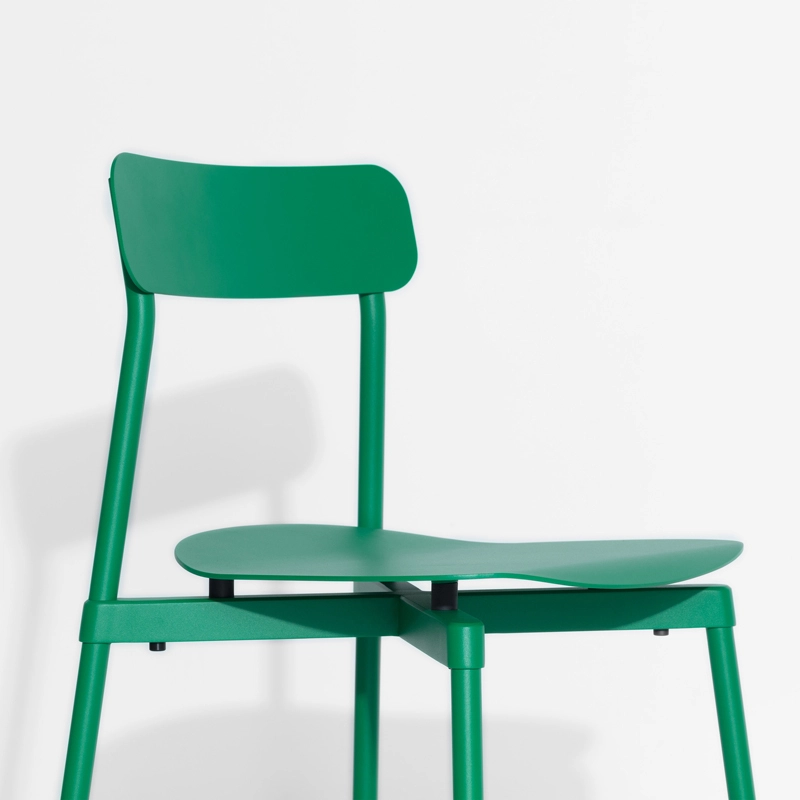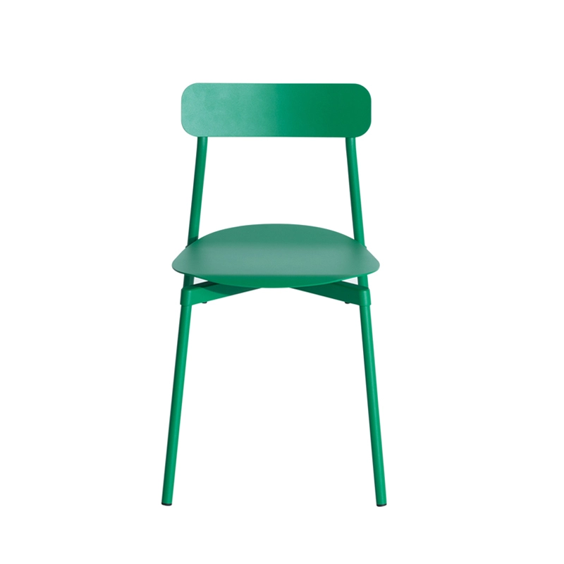 La chaise Fromme, éditée par Petite Friture, est une chaise design en métal se distinguant par ses lignes pures et son caractère unique : les absorbeurs placés sous le siège donnent une flexibilité douce et très confortable à la chaise. Le designer de la chaise Fromme est Tom Chung, un designer industriel canadien et indépendant. Ce créateur s’est associé à Petite Friture pour cette collection très inspirée du cyclisme. En effet, cycliste affirmé, Tom Chung avait l’habitude de gravir la montagne Fromme à l’extérieur de Vancouver et était fasciné par la performance technique de son vélo. Ce nouvel ajout à la gamme de produits avant-gardistes de Petite Friture prouve une fois de plus que la marque donne sa chance aux jeunes créateurs et leur fait confiance pour créer des pièces clés pour ses collections. Empilables et utilisables en extérieur, ces chaises au design minimaliste et graphique s’intégreront dans tous les styles d’intérieurs et d’extérieurs. Véritable poids plume (seulement 4kg), la chaise Fromme est d’une solidité à toute épreuve grâce notamment à un assemblage spécifique et très technique des différentes parties. La forme légèrement incurvée de l’assise ainsi que le plan incliné situé sur le devant de cette dernière augmentent encore le confort.