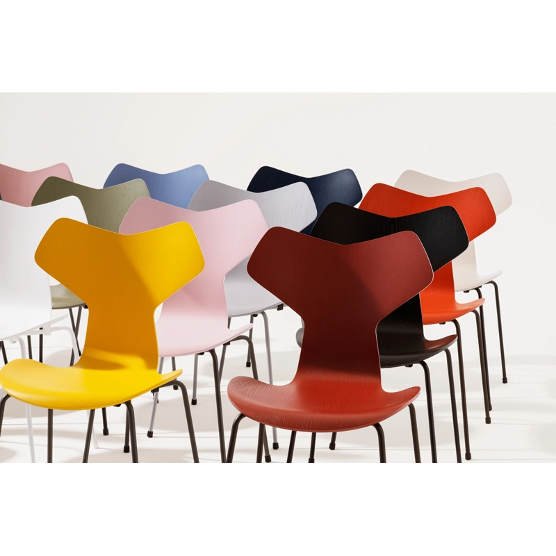 Dessinée par Arne Jacobsen, la chaise Grand Prix fut présentée par Fritz Hansen à l'exposition du printemps des designers au musée d'Art et de Design de Copenhague en 1957. Plus tard dans l'année, cette chaise reçut le Grand Prix de laTriennale de Milan. La Grand Prix est produite avec un piètement en tube d'acier comme la Serie 7 ou avec un piètement bois, comme elle avait été présentée à l'origine. Cette pièce intemporelle s'intègre dans tous les styles d'intérieurs et les différentes finitions disponibles se marient très bien entre elles pour créer des compositions harmonieuses autour de la table.