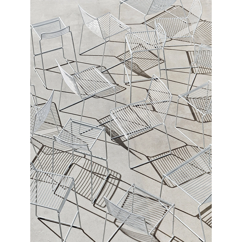 Pour sa collection d'assises Hee Welling est parti d'une base de sièges très simples qu'il perfectionne dans chaque détail, en améliorant la conception et en simplifiant les formes. Il commence par créer une chaise légère aux lignes légères et intemporelles qui lui permettent de s'intégrer dans tous les types d'espaces. Le siège possède une silhouette ludique sans prendre le dessus sur la fonctionnalité. La chaise et le tabouret de bar Hee sont recouverts d'une peinture spécialement conçue pour l'extérieur, résistante aux intempéries, permettant de les utiliser aussi bien dans un jardin qu'à l'intérieur de la maison dans la salle à manger ou la cuisine.