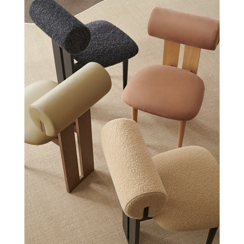 Editée par NORR11, Hippo est une collection de sièges rembourrés qui se caractérise par des formes douces et ludiques, s'imposant dans n'importe quel espace. La chaise Hippo repose sur deux pieds robustes et un profil en bois reliant le siège et le dossier, qui contraste avec la partie rembourrée confortable. Touche sculpturale dans une salle à manger, la chaise Hippo est disponible dans différentes associations de bois et de tissus de grande qualité.