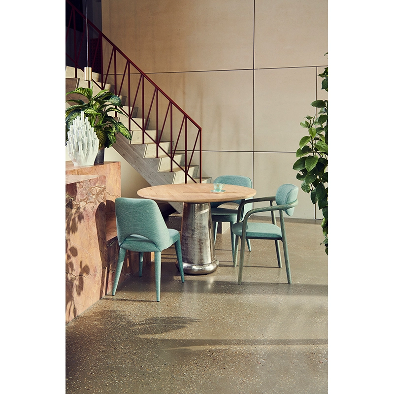 La chaise Holy de Pols Potten apporte une touche sophistiquée et distinctive à votre salle à manger. La silhouette de cette chaise de repas est conçue pour accueillir confortablement dans une atmosphère à la fois décontractée et élégante. Holy se distingue par sa structure métallique recouverte d'un rembourrage intégral, étendu jusqu'aux pieds. La texture douce du tissu de revêtement garantit un toucher agréable tout en assurant un confort optimal. La chaise Holy de Pols Potten est une pièce essentielle et polyvalente qui s'adaptera harmonieusement à tous les styles de décoration.