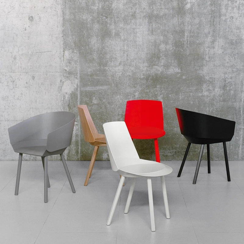 Cette famille de sièges éditée par E15, conçue par Stephan Diez, est réalisée en chêne contrecollé de 4mm. Grâce à un procédé issu du modélisme, deux feuilles de contreplaqué sont étirées à la main et courbées pour former le dossier et l'assise. En version chaise ou fauteuil, Houdini se décline en blanc, gris, rouge et chêne naturel. Sa silhouette et son mode de fabrication font de Houdini un siège moderne, léger et extrêmement confortable pour la cuisine ou la salle à manger.