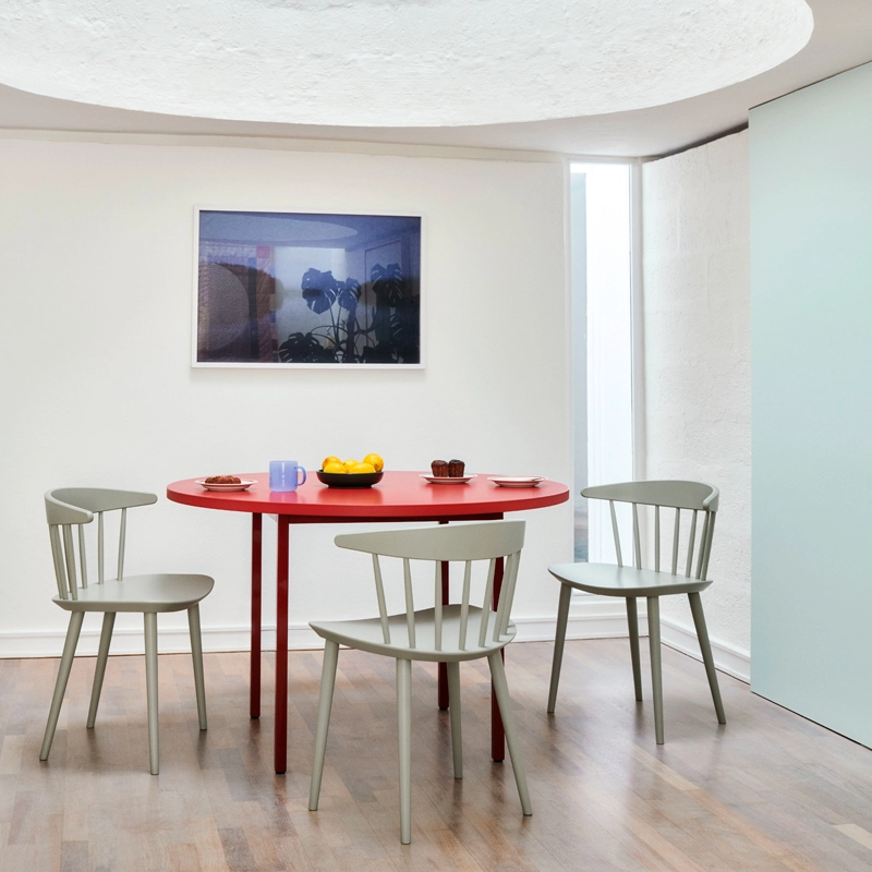 La chaise J104 de Jørgen Bækmark a été conçue comme un croisement entre une chaise de salle à manger et un fauteuil. Edité par Hay, ce classique est fabriqué en hêtre avec une finition naturelle ou dans plusieurs coloris avec une laque à base d'eau.
