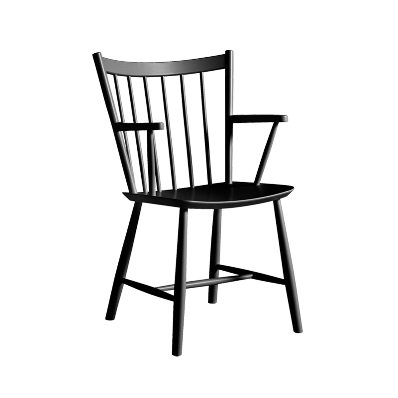 Le petit fauteuil J42, dessiné par Børge Mogensen et réédité par Hay, est doté d'accoudoirs, d’un dossier légèrement incliné et de tiges largement espacées créant un design épuré qui offre une qualité intemporelle. La chaise à accoudoirs J42 combine aspect chaleureux naturel, confort et durabilité. Elle est disponible en hêtre naturel, en hêtre laqué dans différentes couleurs, en chêne laqué naturel ou chêne huilé. La chaise J41 Hay s'intègre à tous les styles d'espaces aussi bien dans la cuisine que dans le salle à manger.