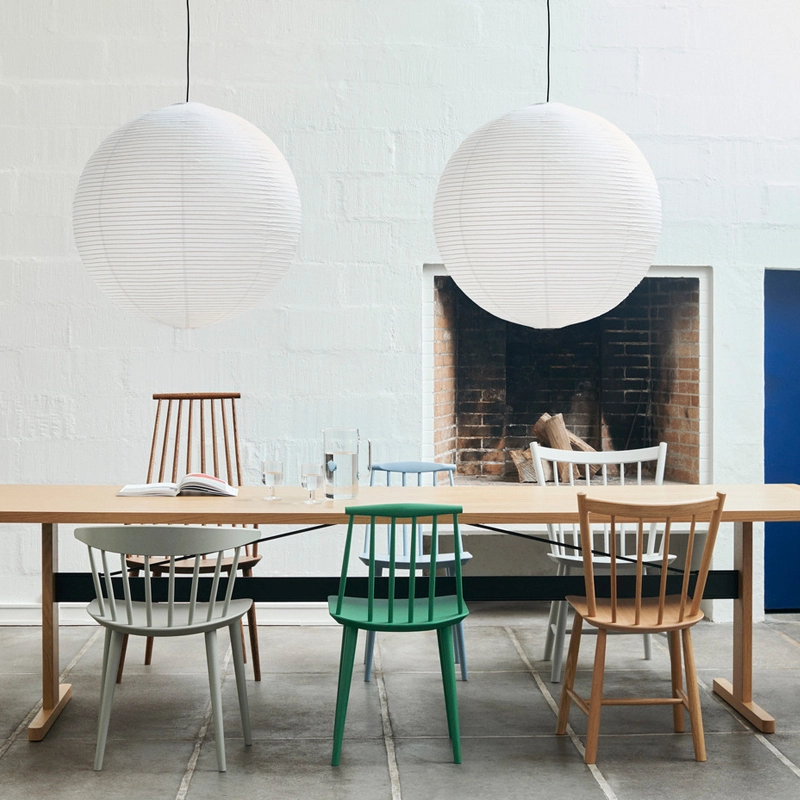 La chaise J77, réalisée par Poul M. Vother, fait partie de la collection rééditée par Hay des classiques du mobilier danois conçus à l'origine pour la société de coopérative des consommateurs danois FDB : des icones dessinées par de grands designers danois dans les années 50-60 . L'idée première, dans les années 40, était de créer du mobilier fonctionnel et démocratique, accessible à tous. En produisant de façon industrielle et ainsi en réduisant les coûts, FDB améliore la disponibilité du mobilier de designer pour les gens ordinaires, en proposant un design de grande qualité à des prix relativement bas. La chaise J77 Hay, dessinée par Folke Palsson est fabriquée en hêtre et disponible en finition naturelle ou peinte. J77 est une chaise représentant à merveille le design scandinave vintage avec ses lignes pures, sobres et rétro. Le designer reprend le dossier formé de fines baguettes en bois, si caractéristique de la chaise Windsor, très en vogue au 18è siècle, pour former une structure aérienne et graphique, avec une assise très confortable. La chaise J77 Hay s'intègrera à tous les espaces de votre intérieur et apportera une touche vintage très tendance autour de votre table.