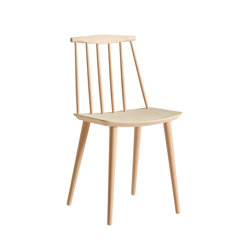 La chaise J77, réalisée par Poul M. Vother, fait partie de la collection rééditée par Hay des classiques du mobilier danois conçus à l'origine pour la société de coopérative des consommateurs danois FDB : des icones dessinées par de grands designers danois dans les années 50-60 . L'idée première, dans les années 40, était de créer du mobilier fonctionnel et démocratique, accessible à tous. En produisant de façon industrielle et ainsi en réduisant les coûts, FDB améliore la disponibilité du mobilier de designer pour les gens ordinaires, en proposant un design de grande qualité à des prix relativement bas. La chaise J77 Hay, dessinée par Folke Palsson est fabriquée en hêtre et disponible en finition naturelle ou peinte. J77 est une chaise représentant à merveille le design scandinave vintage avec ses lignes pures, sobres et rétro. Le designer reprend le dossier formé de fines baguettes en bois, si caractéristique de la chaise Windsor, très en vogue au 18è siècle, pour former une structure aérienne et graphique, avec une assise très confortable. La chaise J77 Hay s'intègrera à tous les espaces de votre intérieur et apportera une touche vintage très tendance autour de votre table.