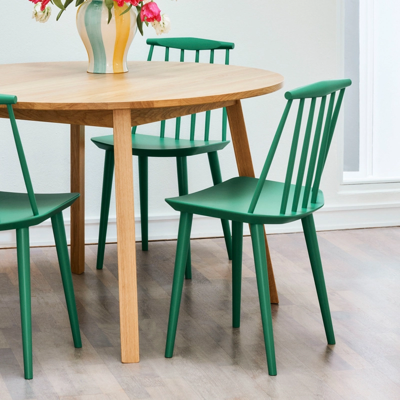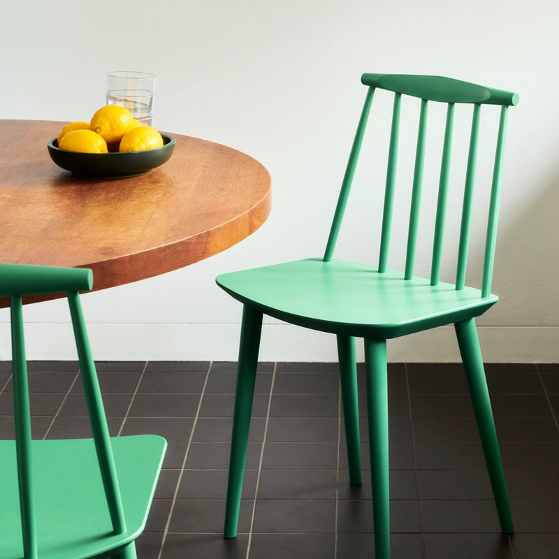 La chaise J77, réalisée par Poul M. Vother, fait partie de la collection rééditée par Hay des classiques du mobilier danois conçus à l'origine pour la société de coopérative des consommateurs danois FDB : des icones dessinées par de grands designers danois dans les années 50-60 . L'idée première, dans les années 40, était de créer du mobilier fonctionnel et démocratique, accessible à tous. En produisant de façon industrielle et ainsi en réduisant les coûts, FDB améliore la disponibilité du mobilier de designer pour les gens ordinaires, en proposant un design de grande qualité à des prix relativement bas. La chaise J77 Hay, dessinée par Folke Palsson est fabriquée en hêtre et disponible en finition naturelle ou peinte. J77 est une chaise représentant à merveille le design scandinave vintage avec ses lignes pures, sobres et rétro. Le designer reprend le dossier formé de fines baguettes en bois, si caractéristique de la chaise Windsor, très en vogue au 18è siècle, pour former une structure aérienne et graphique, avec une assise très confortable. La chaise J77 Hay s'intègrera à tous les espaces de votre intérieur et apportera une touche vintage très tendance autour de votre table.