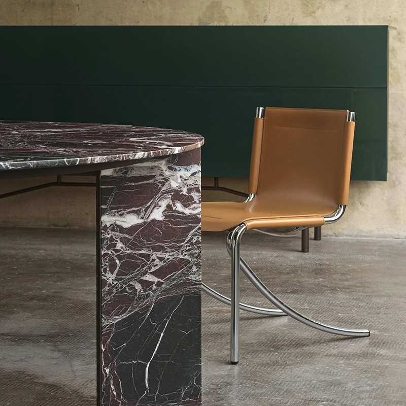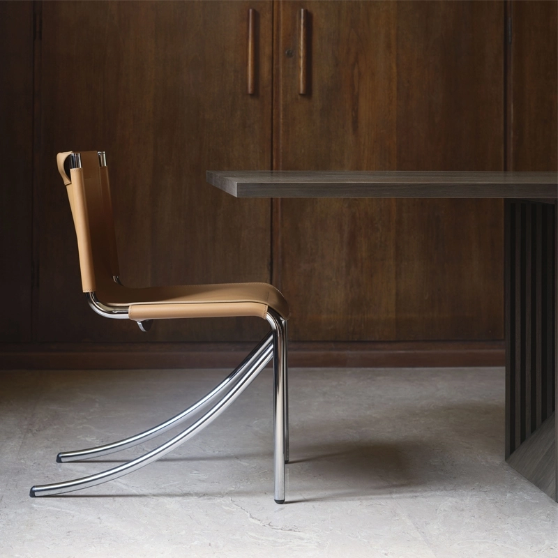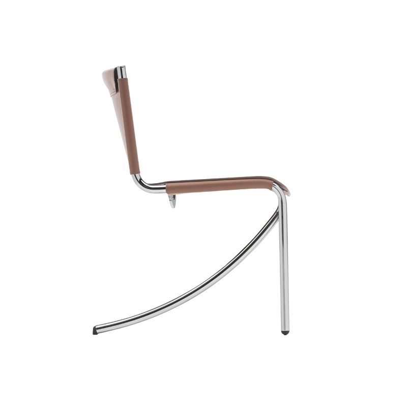 Jot se compose d’une structure tubulaire chromée et d’un revêtement cousu main en cuir tanné, sa silhouette élancée et épurée l’inscrit parfaitement dans le style contemporain. Jot incarne également toute l’ingéniosité du designer Giotto Stoppino quant à son concept de chaise en porte-à-faux et son usage des matériaux.