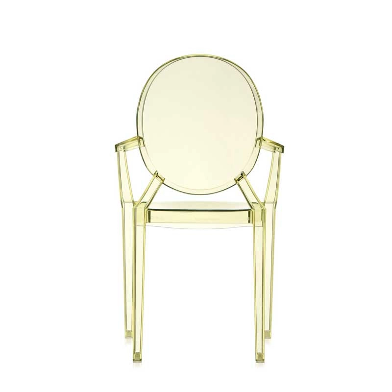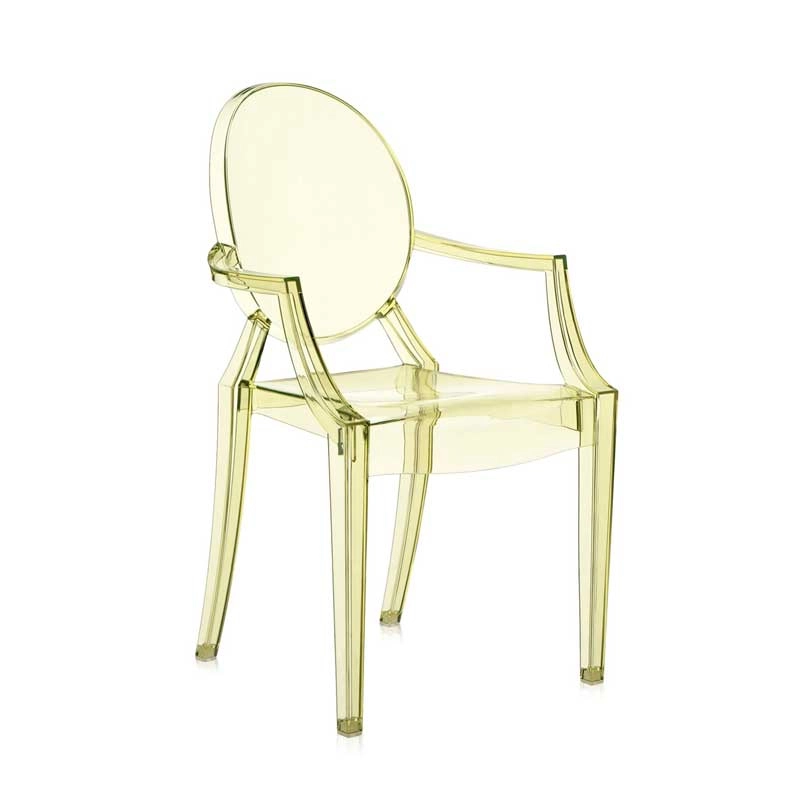 Louis Ghost est un petit fauteuil confortable en polycarbonate transparent et coloré. Un style Louis XV, l'archétype du baroque, revisité par Philippe Starck, pour étonner, émouvoir, fasciner. Louis Ghost est l'exemple le plus hardi au monde d'injection de polycarbonate en un seul moule. En dépit de son aspect évanescent et cristallin, Louis Ghost est stable, résistant aux chocs, aux griffures et aux agents atmosphériques et empilable jusqu'à six pièces. Un modèle extrêmement attrayant et esthétique qui s'intègre avec élégance et ironie dans tout type d'habitation ou d'espace collectif. Il se décline en transparent, orange, vert, bleu jaune, fumé, noir brillant ou blanc brillant. Une version chaise de table, Victoria Ghost, est également disponible, ainsi qu'une version pour enfant, la Lou Lou Ghost.
