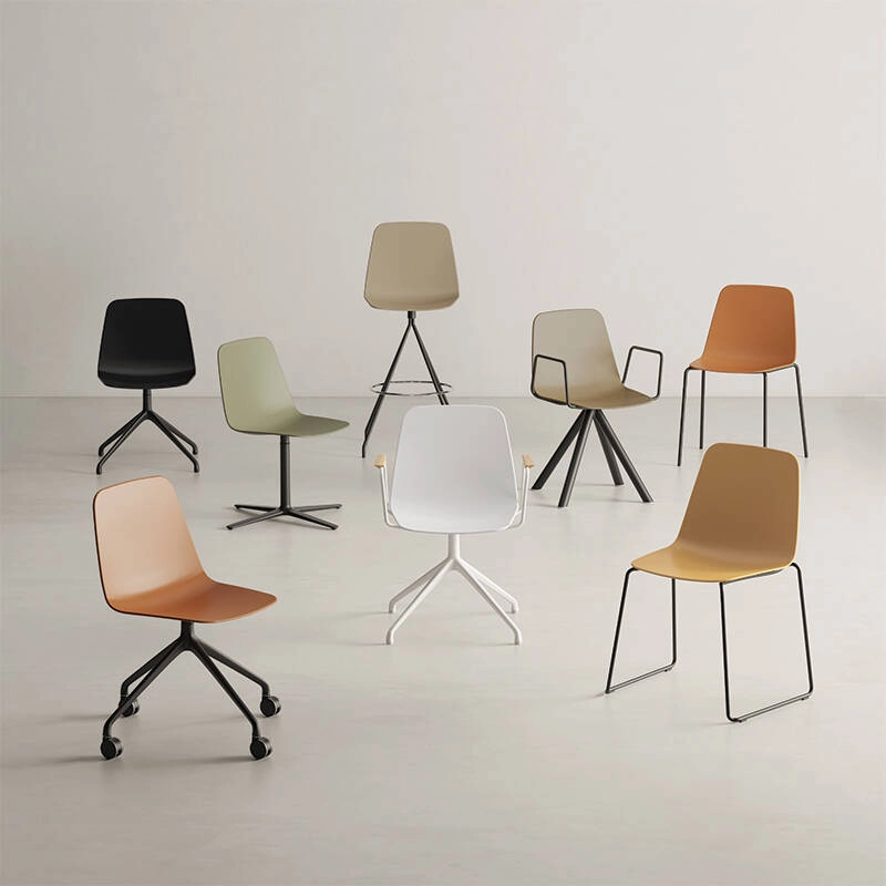 Maarten Plastic, dessinée par Victor Carrasco, symbolise l'aventure de Viccarbe dans le polypropylène : un matériau particulièrement durable, plus adaptable au mouvement de l'utilisateur, capable de compléter la collection Viccarbe d'un point de vue utilisation et fonction. Cette version de la chaise maintient le siège en forme de losange caractéristique de la famille Maarten. Les caractéristiques ajoutées incluent une large gamme de bases (quatre pieds, traîneau, pivotant, pyramide, à roulettes…), et la possibilité de les empiler selon le type de pieds, une excellente valeur ajoutée pour les espaces partagés. Avec Maarten Plastic, Victor Carrasco renforce sa trajectoire dans le domaine du design avec la création de pièces emblématiques, intemporelles et méditerranéennes à la fois confortables et abordables. Durable pour les installations, mais accueillant dans les maisons.