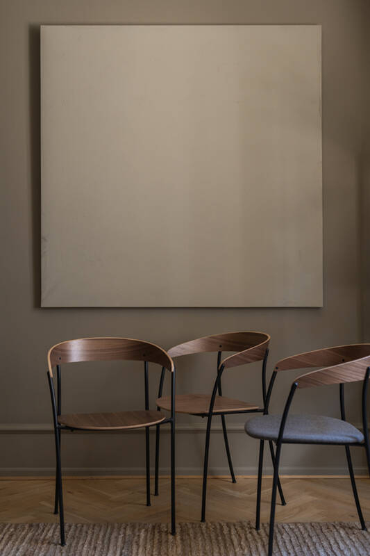 Edité par New Works, le petit fauteuil Missing apparait comme un dessin au trait qui aurait pris vie. Sensuelle mais forte, la courbe douce de chaque ligne crée une fantaisie difficile à décrire. Les lignes droites ont été adoucies, ce qui donne l'impression que le siège et le dossier flottent au-dessus de la structure en acier mince. Le résultat est un siège qui va à l'essentiel, une interprétation contemporaine et fonctionnelle de la modeste chaise de café : légère, empilable et durable, complétée par une silhouette très confortable.