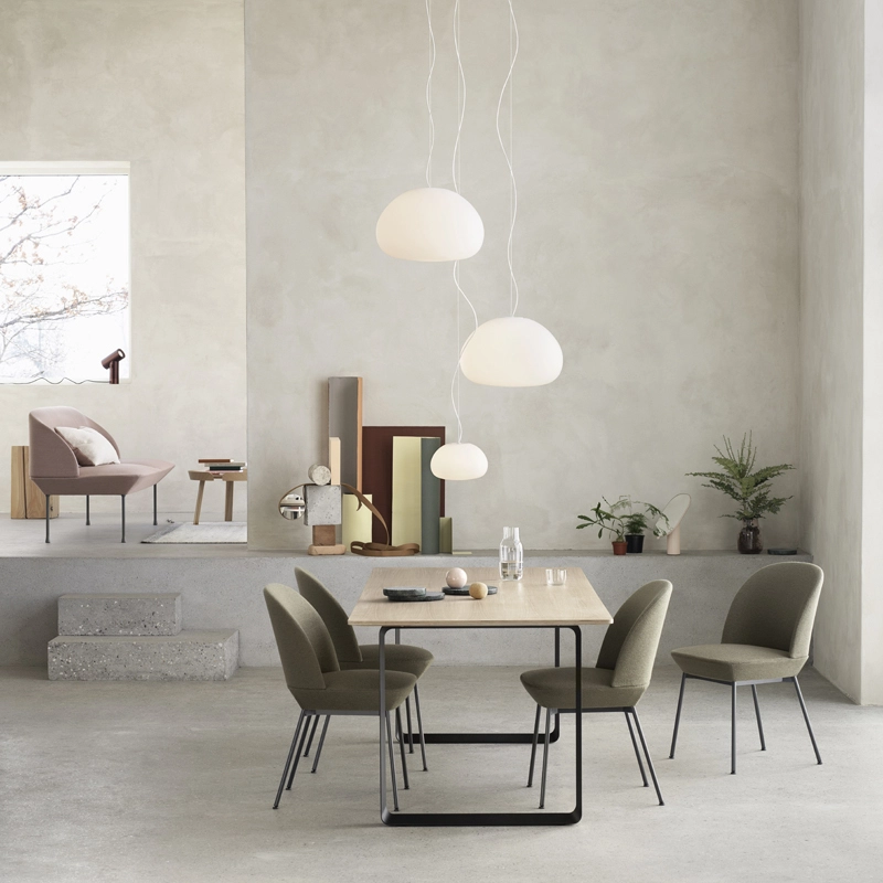 Dernière née de la collection éponyme, la chaise Oslo conjugue modernité et grand confort dans une silhouette enveloppante et élégante. Les designers Anderssen & Voll reprennent les éléments caractéristiques des canapés et fauteuils de la collection pour les adapter à la typologie des chaises. Le résultat est un siège à la fois accueillant et sculptural, composé d’une assise et d’un dossier entièrement rembourrés, soutenus par des pieds fins en métal qui donnent de la légèreté à l’ensemble. Editée par Muuto, la chaise Oslo est séduisante aussi bien seule qu’en composition de plusieurs éléments dans une salle à manger, un restaurant, un espace de travail ou une chambre d’hôtel.