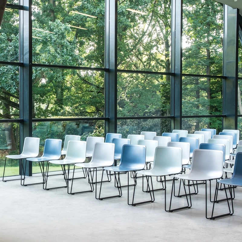 Pato met non seulement l'accent sur la qualité de fabrication mais également sur le design, disponible avec différents piètements et plusieurs couleurs d'assise. Polyvalente, elle convient à tous les environnements, collectifs ou privés. La légère flexion le long du bord de la