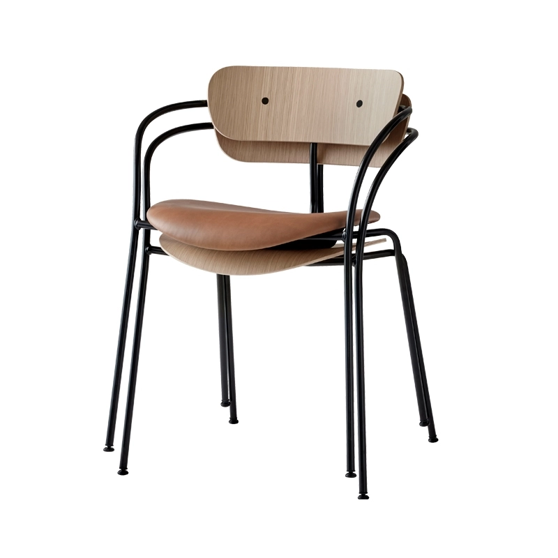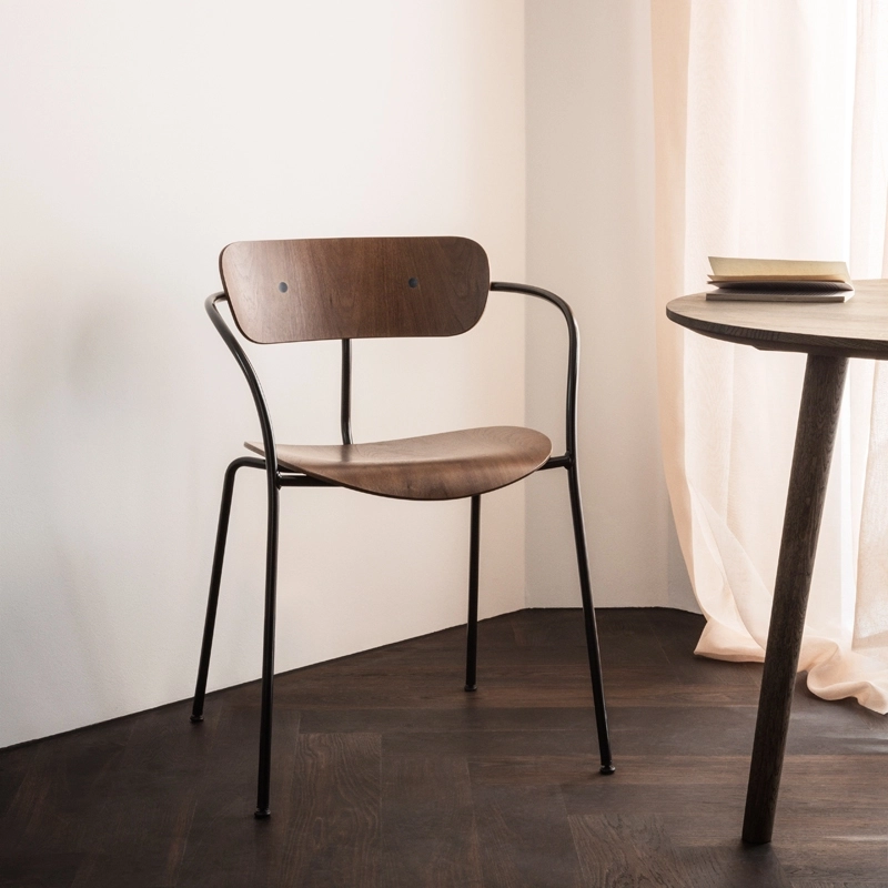 Testament du modernisme d’après-guerre, le Langelinie Pavilion est un lieu emblématique à Copenhague, construit dans les années 50. Le couple d’architecte Eva et Niels Koppel a créé des modules d’acier et de verre qui s’alignent avec l’horizon, permettant la vue sur le front de mer et la promenade. Pour créer une chaise empilable pour ce bâtiment historique, les designers Anderssen & Voll ont voulu marier le modernisme classique de cette construction des années 50 avec une nouvelle forme de modernisme. Quel que soit l’angle selon lequel on la regarde, la chaise Pavilion est dotée d’une silhouette légère et gracieuse. Les minces accoudoirs et pieds dégagent une sensation aérienne, et s’accordent avec le dossier et l’assise aux courbes douces. Editée par And Tradition, la chaise Pavilion est disponible en chêne naturel, chêne teinté noir ou noyer, pour s’adapter à votre intérieur.