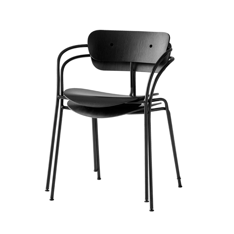 Testament du modernisme d’après-guerre, le Langelinie Pavilion est un lieu emblématique à Copenhague, construit dans les années 50. Le couple d’architecte Eva et Niels Koppel a créé des modules d’acier et de verre qui s’alignent avec l’horizon, permettant la vue sur le front de mer et la promenade. Pour créer une chaise empilable pour ce bâtiment historique, les designers Anderssen & Voll ont voulu marier le modernisme classique de cette construction des années 50 avec une nouvelle forme de modernisme. Quel que soit l’angle selon lequel on la regarde, la chaise Pavilion est dotée d’une silhouette légère et gracieuse. Les minces accoudoirs et pieds dégagent une sensation aérienne, et s’accordent avec le dossier et l’assise aux courbes douces. Editée par And Tradition, la chaise Pavilion est disponible en chêne naturel, chêne teinté noir ou noyer, pour s’adapter à votre intérieur.