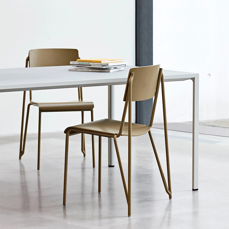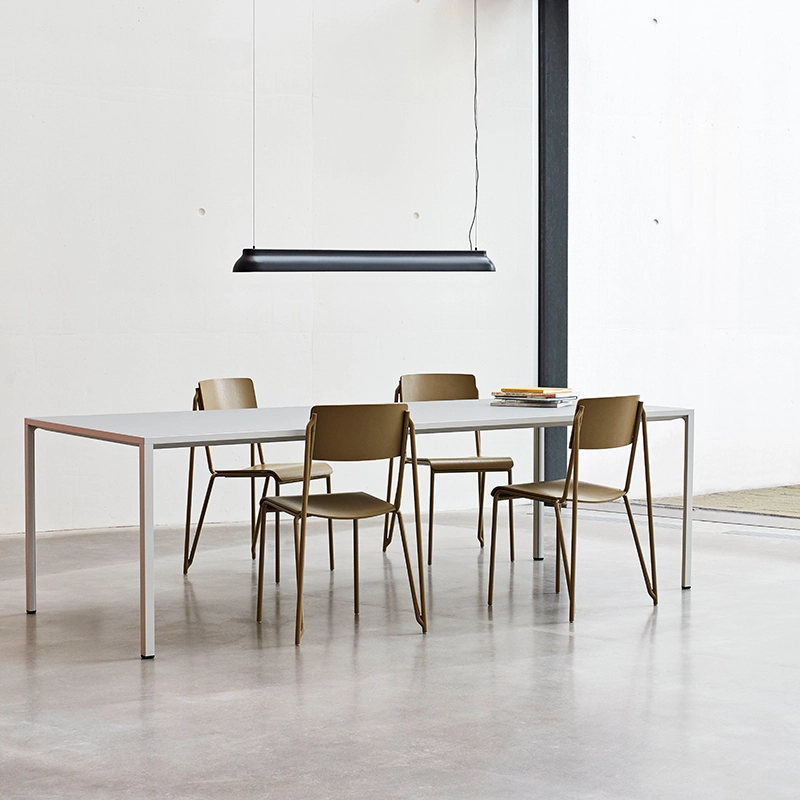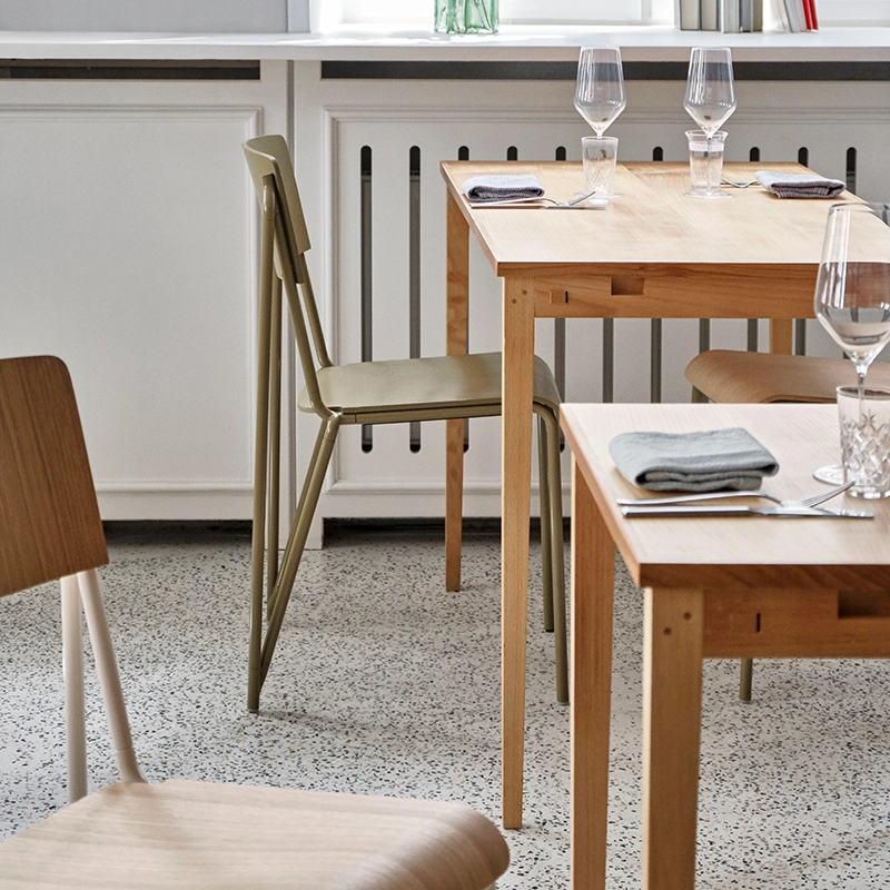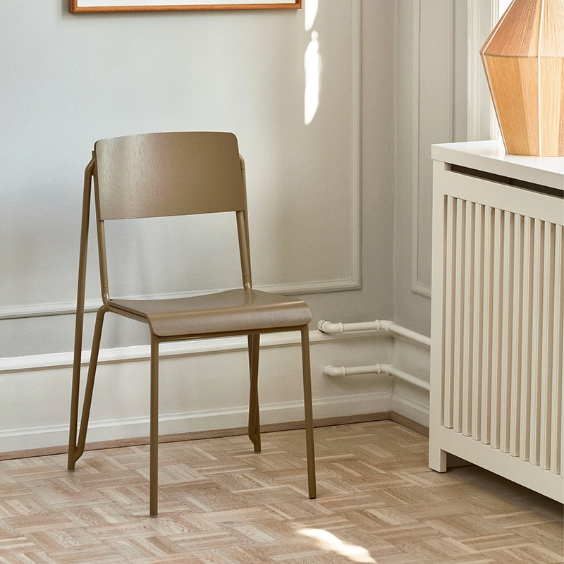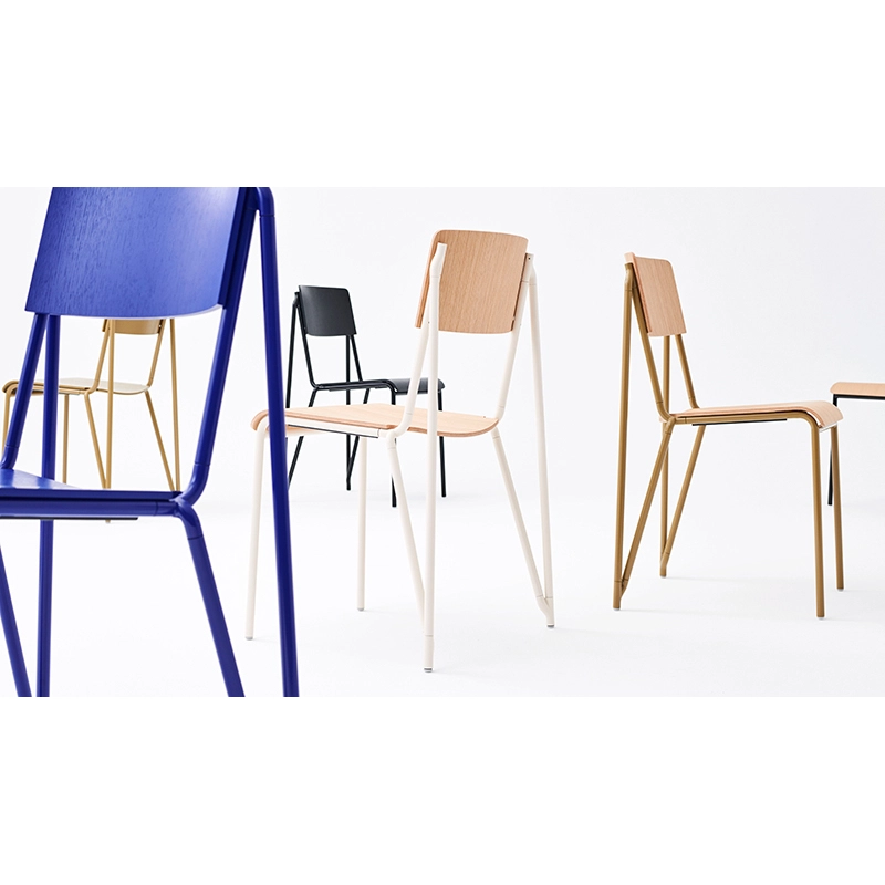 Fruit d’un voyage de huit ans, la chaise Petit Standard de Daniel Rybakken pour Hay est une étude de précision et de détails réfléchis. Dans le but de créer une chaise hautement empilable, où les caractéristiques empilables amélioreraient réellement le design de la chaise, Petit Standard fusionne l'élégance et la fonctionnalité dans un design emblématique. Utilisant des tubes en aluminium moulé sous pression et en acier qui se connectent en un triangle tridimensionnel, le cadre léger a une silhouette distinctement géométrique, qui est contrebalancée par la chaleur et la qualité naturelle du siège et du dossier en placage de chêne. Le dossier haut et le siège incurvé de Petit Standard assurent un grand confort, tandis que les tubes rigides optimisent la résistance et la capacité d'empilage de la chaise, la rendant idéale pour les environnements d'entreprise, les établissements d'enseignement et les environnements privés.