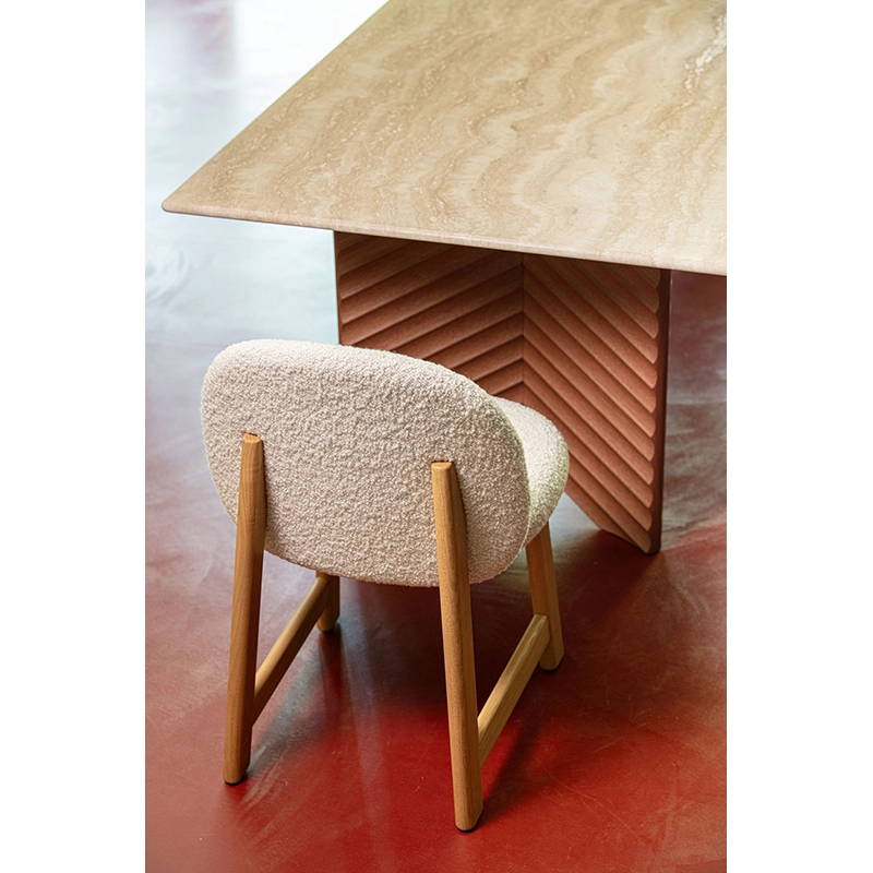 Conçue par Patricia Urquiola pour Moroso, la chaise Pheaby incarne l'alliance de l'excellence artisanale et de la technique industrielle. Cette chaise rembourrée est réalisée en frêne verni, offrant une esthétique à la fois élégante et durable. L'assise et le dossier de la chaise Pheaby sont rembourrés avec de la mousse de polyuréthane, assurant un confort optimal. Le design de la structure de la chaise Pheaby rappelle la forme d'un chevalet de menuisier, soutenant le siège doux et arrondi, créant ainsi une expérience visuelle et tactile unique. La chaise rembourrée Pheaby se distingue par sa polyvalence, sa légèreté et son confort, dont le design relève d'une approche rationnelle et réfléchie dans le choix de chaque détail, démontrant l'équilibre harmonieux entre esthétisme et fonctionnalité.