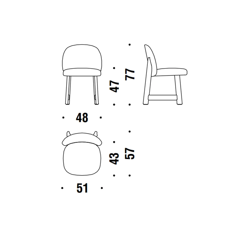 l 51 x p 57 x h 77 cm, assise h 47 cm
