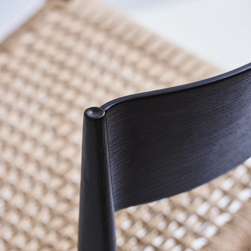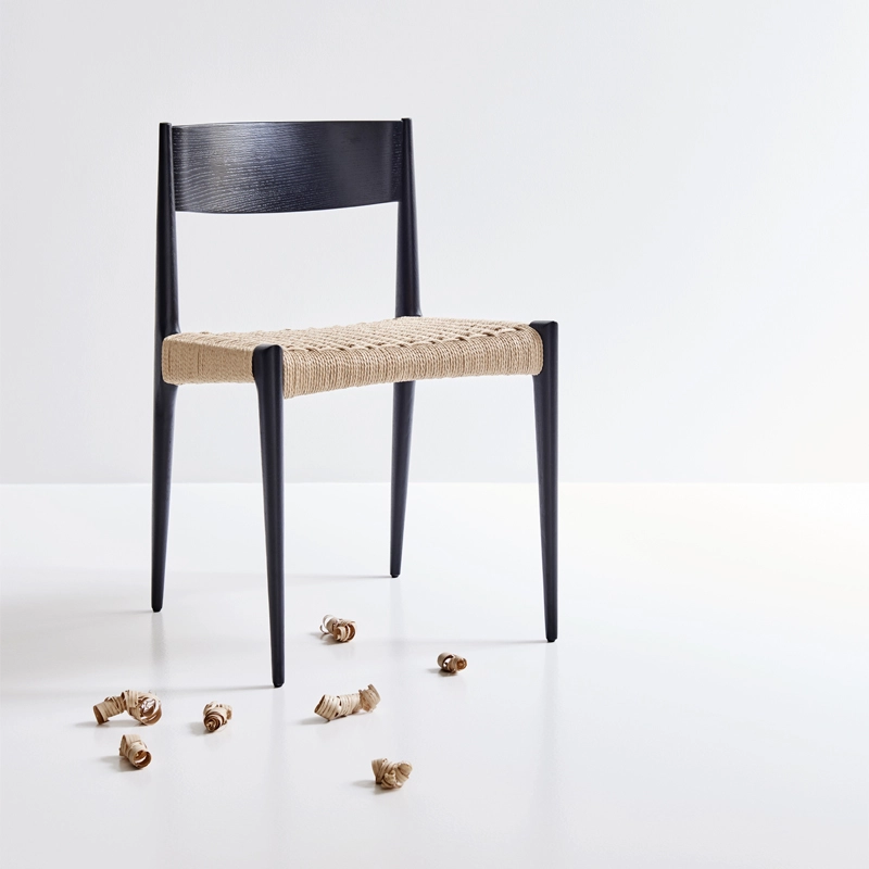 Les pieds fins et coniques en bois massif donnent à la chaise Pia DK3 une expression visuelle légère. L'assise est réalisée en cordelette de papier tressée à la main, et le dossier est moulé, ce qui confère un confort d'assise optimal.