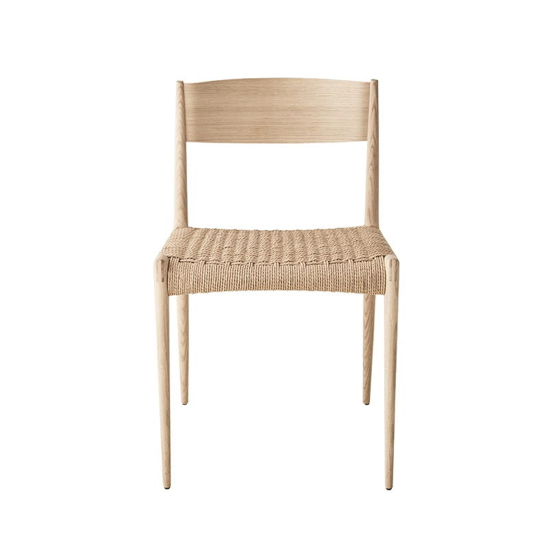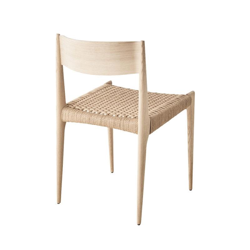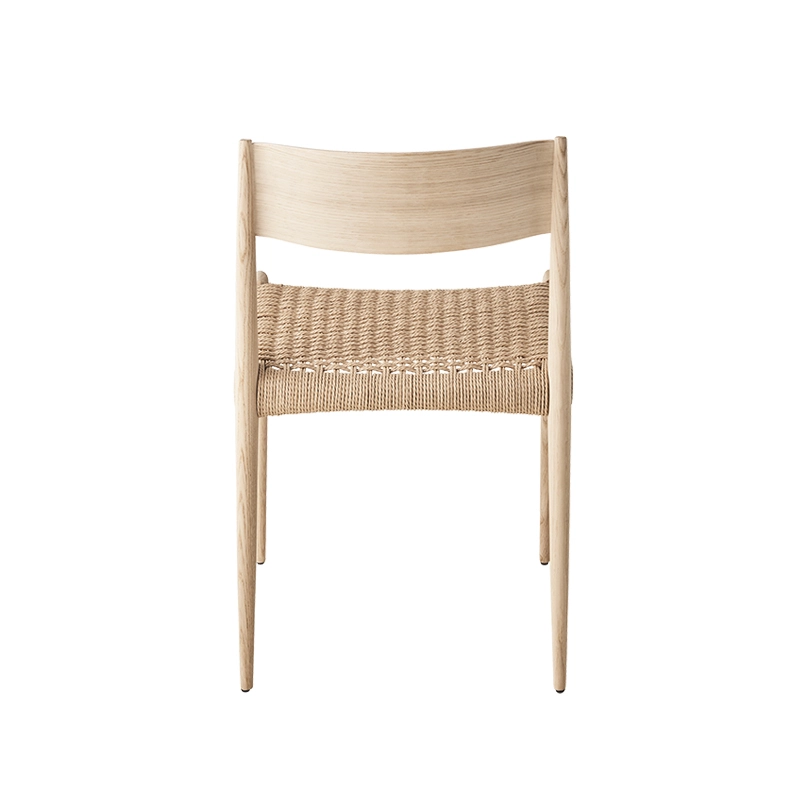 bois massif, dossier contreplaqué, assise corde de papier tissée à la main