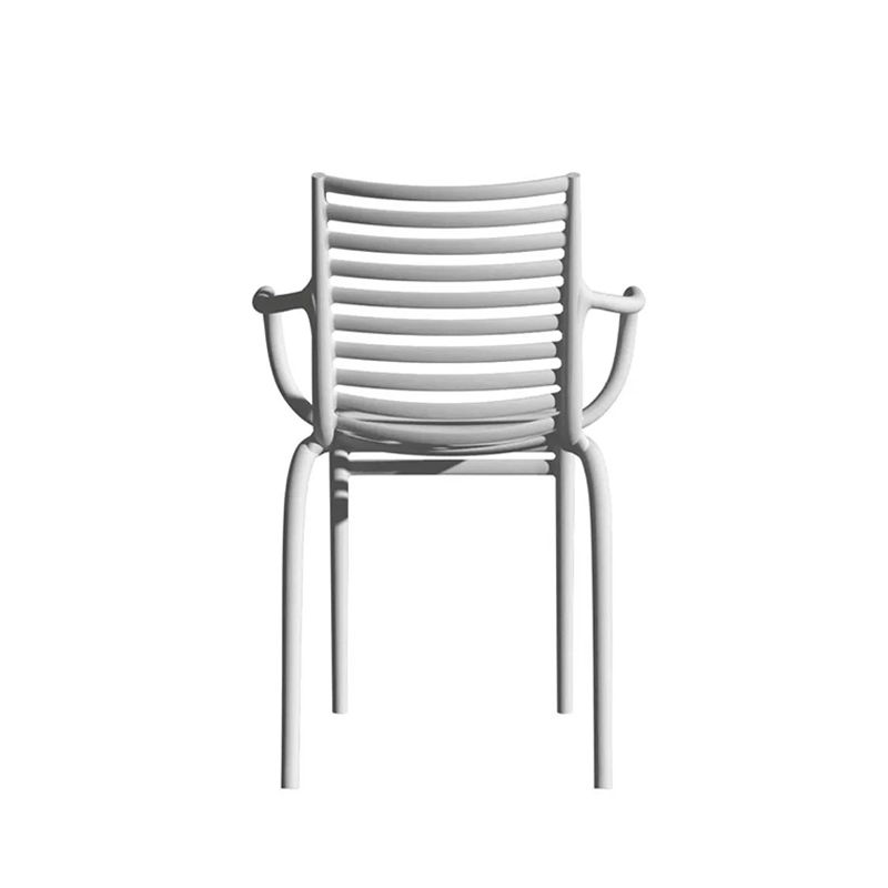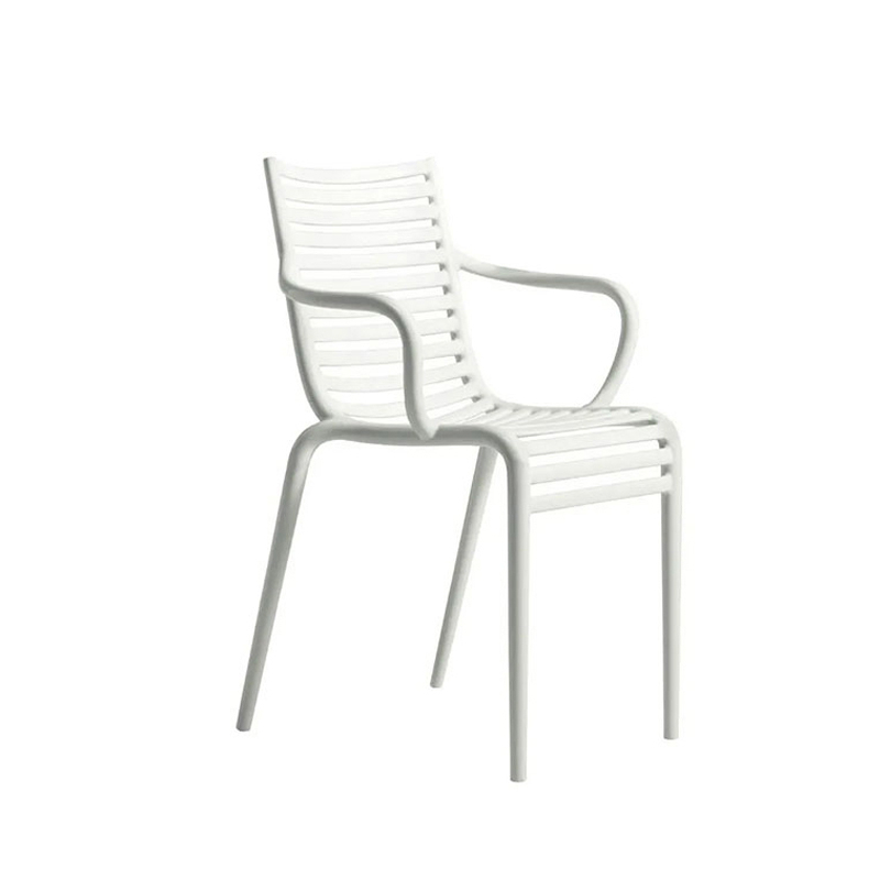 Un mobilier classique tel qu'une chaise à lattes devient entre les mains de Philippe Starck un mobilier recherché et design. Grâce à ses éléments horizontaux constituant l'assise et le dossier, la chaise PIP-e avec accoudoirs de Driade crée un jeu entre lumière et ombre. La chaise PIP-e avec accoudoirs peut être utilisée aussi bien en intérieur qu'en extérieur.