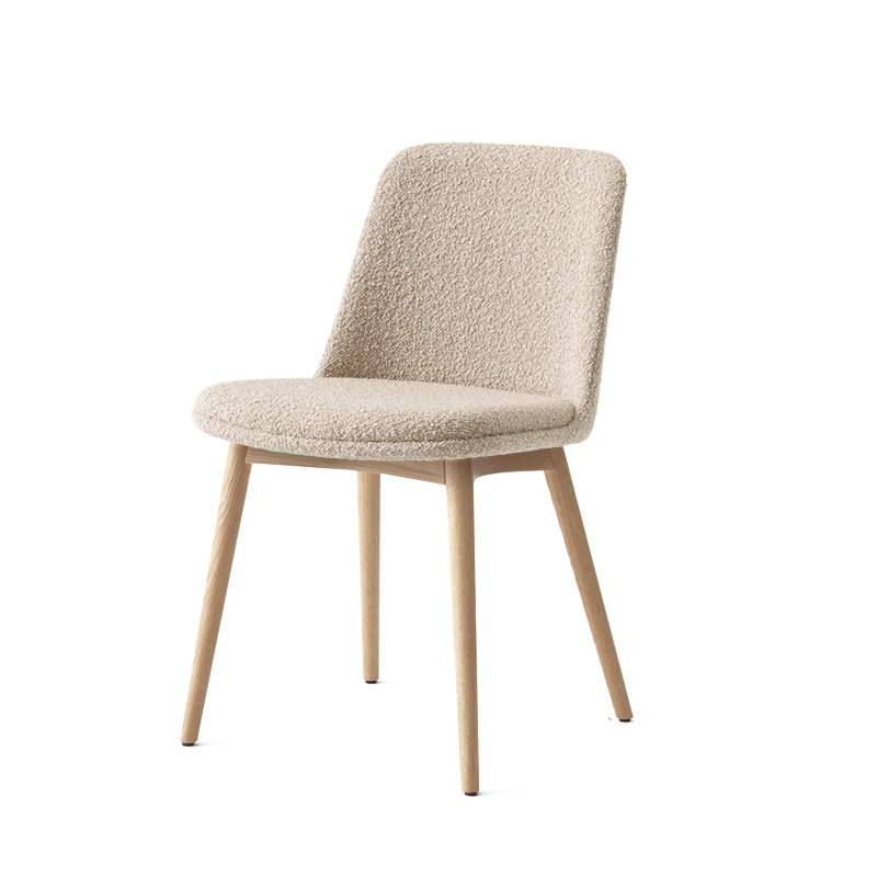 coque polypropylène recyclé et fibre de verre, mousse hr, revêtement tissu, pieds chêne