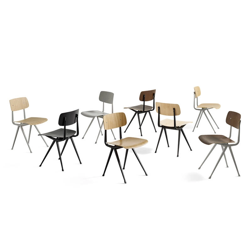 Result possède un siège et un dossier fabriqués en chêne qui lui confère une résistance maximale tout en conservant de la légèreté. Disponible différentes finitions de bois et de couleurs de base, la chaise
