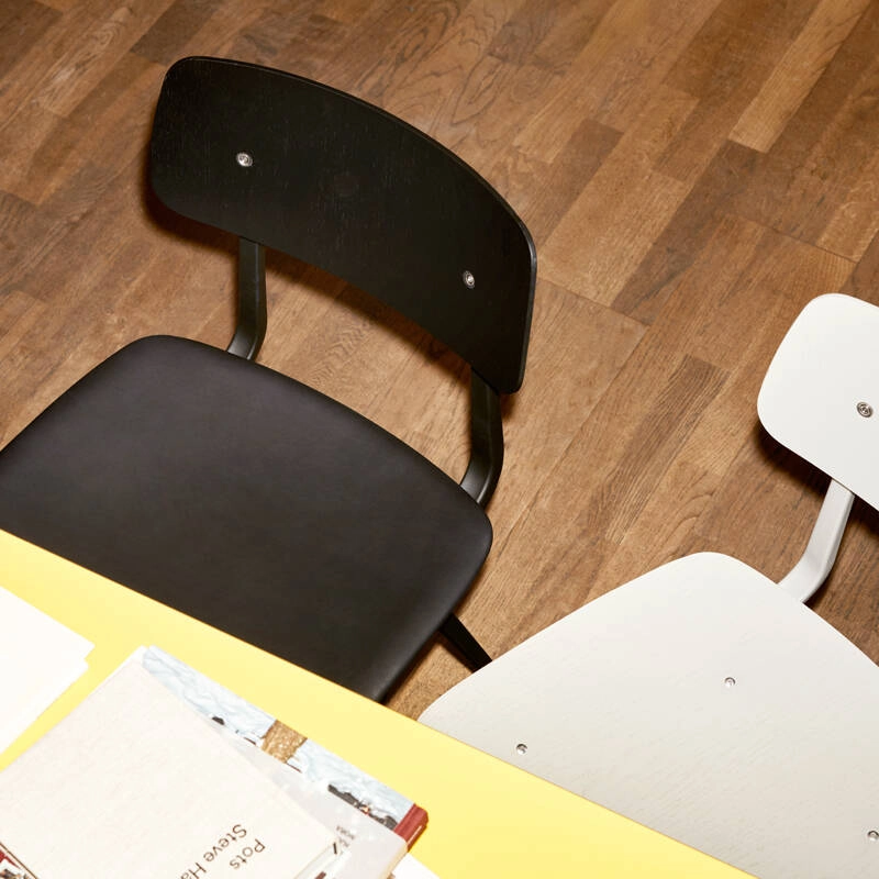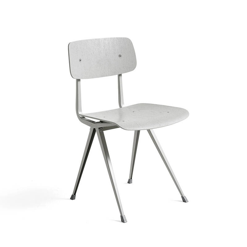 Créée à l’origine dans les années 50 par Friso Kramer et Wim Rietveld alors qu’ils travaillaient chez Ahrend, la chaise Result fait partie des collections relancées par ce dernier en collaboration avec la marque Hay. Considérée comme une création novatrice, la chaise Result propose une utilisation innovante de la tôle d’acier sur un produit à la forme organique et contemporaine. Dotée d’une fine base en tôle d’acier, Result possède un siège et un dossier fabriqués en chêne qui lui confère une résistance maximale tout en conservant de la légèreté. Disponible différentes finitions de bois et de couleurs de base, la chaise Result de Hay se caractérise par sa construction simple et l’utilisation de matériaux durables et solides.Le résultat est une chaise polyvalente qui s’adapte aisément au sein de nombreux espaces publics et privés.