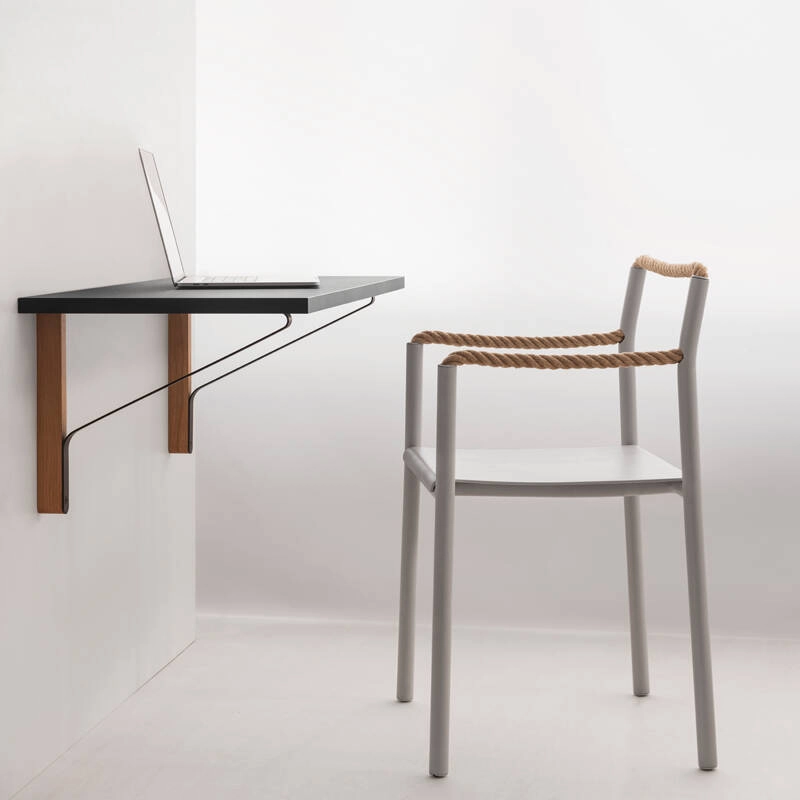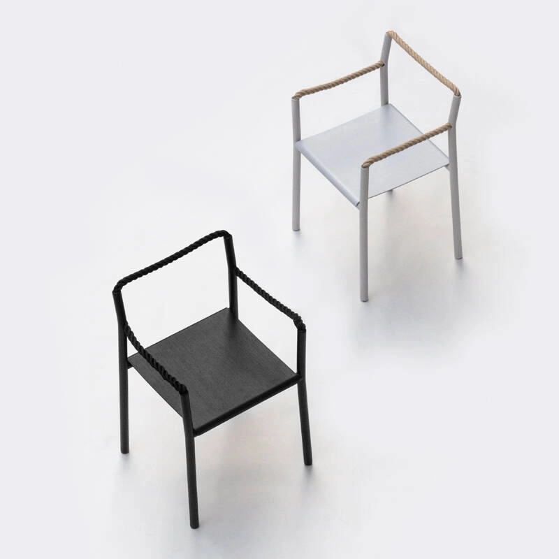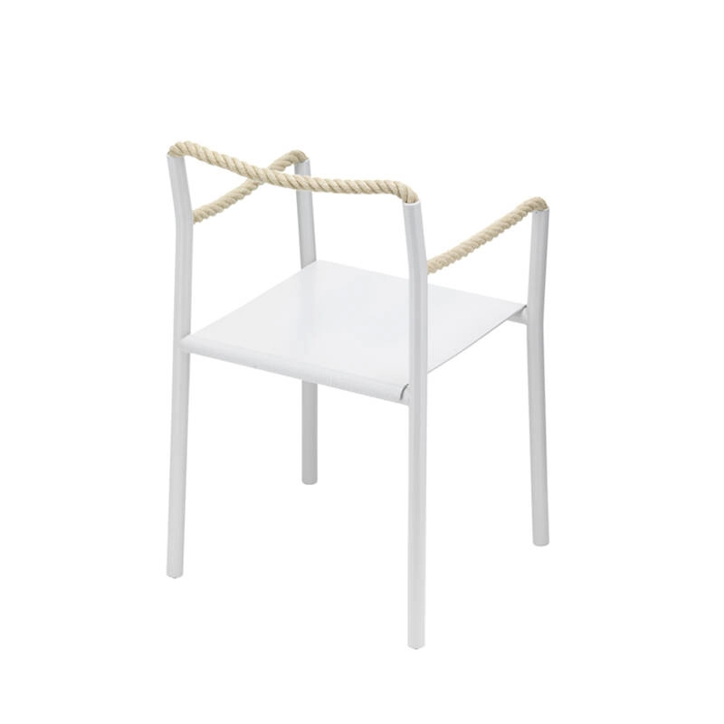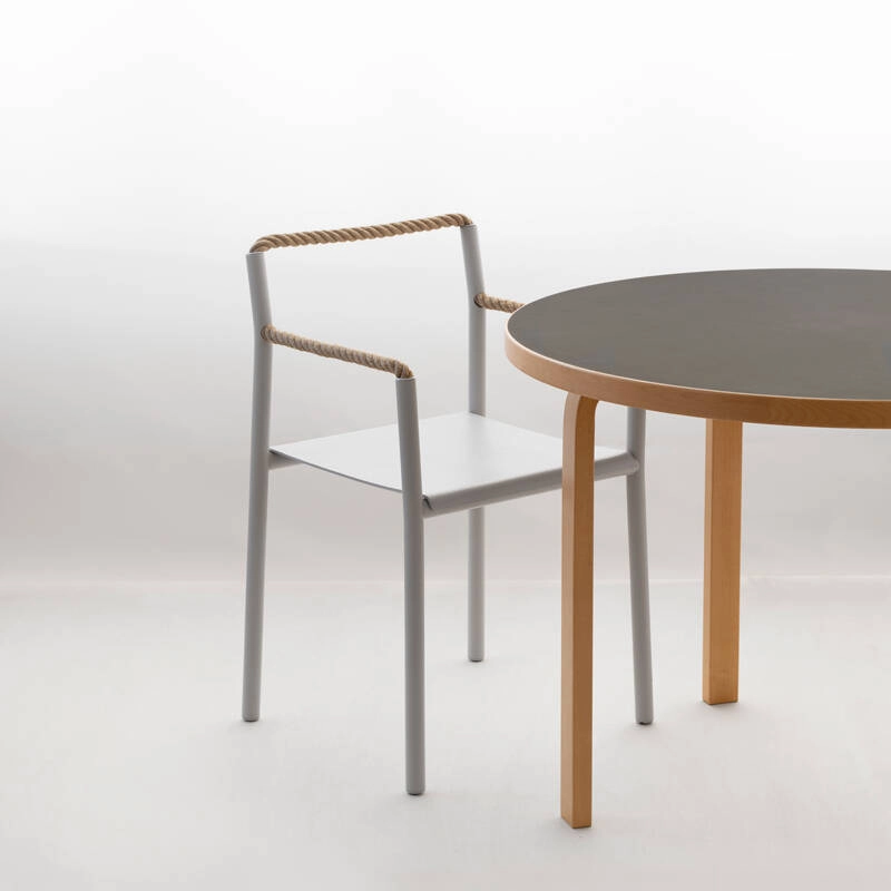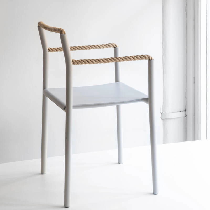 Silhouette plus que bloc solide, la chaise Rope est un dessin au trait traduit en trois dimensions, un geste artistique simple qui prend vie dans l’espace. Dessinée par Ronan & Erwan Bouroullec et éditée par Artek, la chaise Rope est une synthèse de contrastes : une réalisation technique sophistiquée et une expression créative, une structure robuste et des éléments flexibles, des tubes rigides et une corde souple. Créée pour une utilisation marine, la corde est au cœur du confort inattendu de la chaise Rope. La corde permet à la chaise de s’adapter à celui qui est assis dessus. Là où d’autres chaises dictent une manière spécifique de s’assoir, la chaise Rope invite à une créativité dans la posture, encourageant la dynamique et les changements de position. Quand la personne assise se lève, la chaise conserve la trace du corps, l’empreinte de l’utilisateur qui co-définit sa forme.