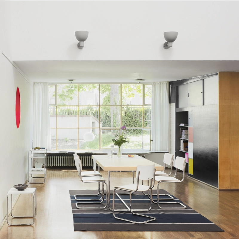 En 1931, Mart Stam révolutionne un concept suivi pendant des siècles en débarrassant les chaises de leurs pieds arrière. Cette idée sera par la suite développée et affinée, donnant naissance à un objet parfait pour les environnements où sobriété et qualité sont de mise. Ce qui compte pour Mart Stam lorsqu’il dessine des meubles, c’est l’utilité et l’aspect économique du meuble, que ce soit sur le plan esthétique ou de la réduction des matériaux. Le résultat est une chaise à la forme rectiligne, dotée d’une construction épurée et d’un confort d’assise amélioré. Son modèle le plus minimaliste est la chaise à piètement luge S 43, pour laquelle il combine une structure en acier tubulaire à un dossier et une assise en bois moulé. La clarté et la sobriété de ce siège à piètement luge reflètent parfaitement l’esprit de modernité de l’époque. Le droit de propriété artistique pour cette chaise de style rigoureusement cubique sans pieds arrière est aujourd’hui détenu par Thonet. Durable est intemporelle, la chaise S 43 trouve sa place dans de nombreux environnements, privés ou publics.