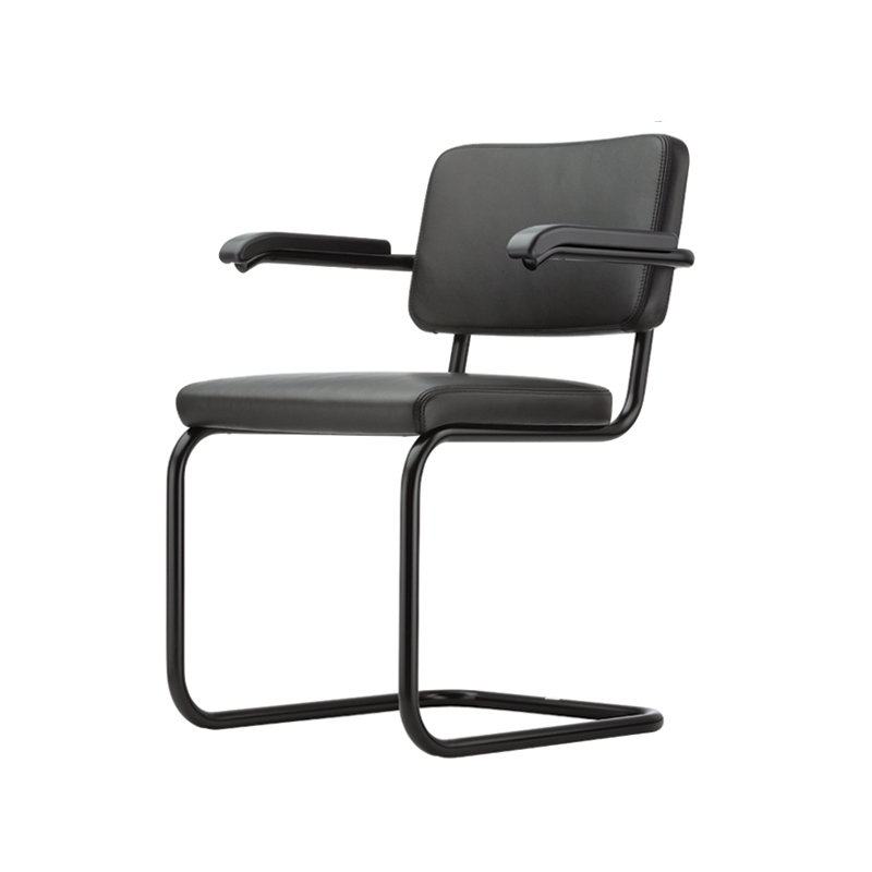 La chaise S 64 PV en cuir a été créée par Marcel Breuer pour la marque Thonet. C'est une variante de l'icône du design, la célèbre chaise cantilever réalisée en 1928-1930. Naviguant aisément entre les différents styles de décoration, la S 64 s’intègre parfaitement aussi bien dans une pièce résolument moderne que dans un espace où différents styles et époques se rencontrent. Le siège à piètement luge S 32 et la variante S 64 avec accoudoirs sont sans aucun doute les classiques en acier tubulaire les plus connus. Avec sa structure en acier chromé et son assise rembourrée et revêtue de cuir, la chaise S 64 PV Thonet est intemporelle et durable, s'accordant avec tous les styles d'intérieurs.