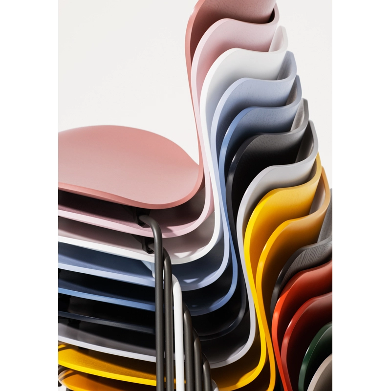Les chaises Série 7, dessinées par Arne Jacobsen en 1955, sont de loin les chaises les plus vendues de l'histoire du fabricant Fritz Hansen. Classiques du design, elles font partie de notre quotidien.  Visionnaire, Arne Jacobsen a exploité les possibilités du placage et moulage du bois déjà employé sur la chaise Fourmi en 1952, pour parvenir à la forme iconique de la Série 7. Légère et empilable, elle s'impose dans tous les espaces par sa forme douce et son confort. Sa structure chromée s'associe avec un siège en noyer, chêne, chêne foncé, ou frêne coloré. La Série 7 se décline également en version enfant.