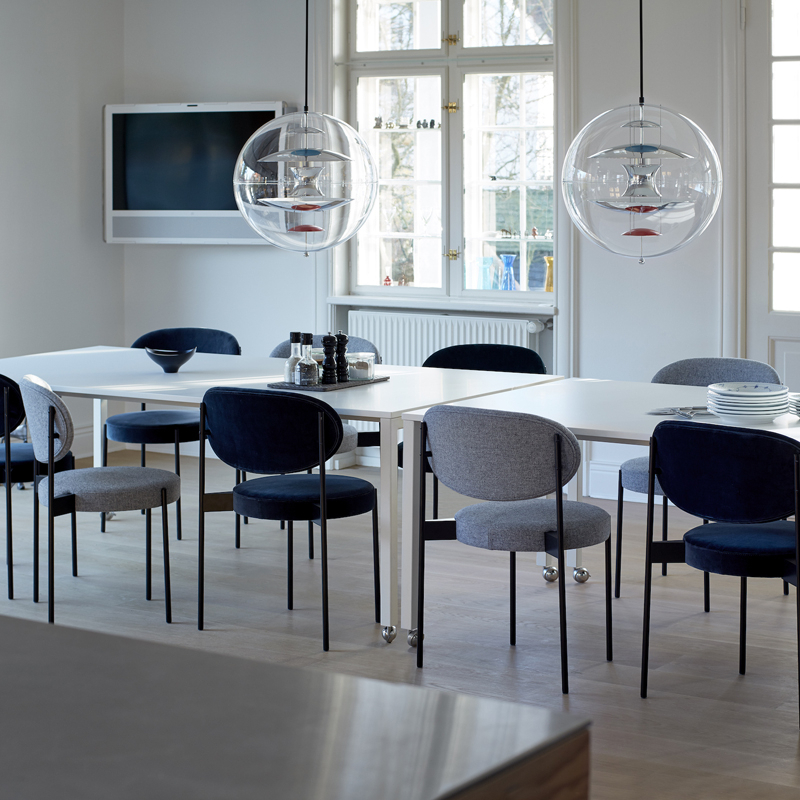 En 2015, Verpan a redécouvert une chaise oubliée dans les Archives Panton. Dévoilée pour la première fois en 1967, elle a été produite pendant très peu de temps. En se basant sur les dessins originaux et les notes de Verner Panton, Verpan a pu imaginer à nouveau ce magnifique design en l’adaptant aux normes modernes. Verner Panton avait dessiné la chaise Series 430 comme une étude ayant pour but de procurer le même confort qu’un fauteuil. Il réussit cela en appliquant un système traditionnel de sangles à l’assise entièrement rembourrée, pour s’adapter au poids du corps. S’ajoute à cela un large dossier enveloppant et une structure légère et élégante montée à l’extérieur de l’assise et du dossier. Empilable, raffinée et confortable, Series 430 est réellement une chaise multifonctions qui s’intègre aussi bien à la maison, dans un restaurant ou un bureau.